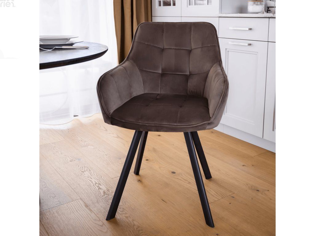 Design, který zaujme: Dekorativní prošití a kombinace šedohnědé Velvet látky s černým kovem dodávají židli elegantní a nadčasový vzhled.