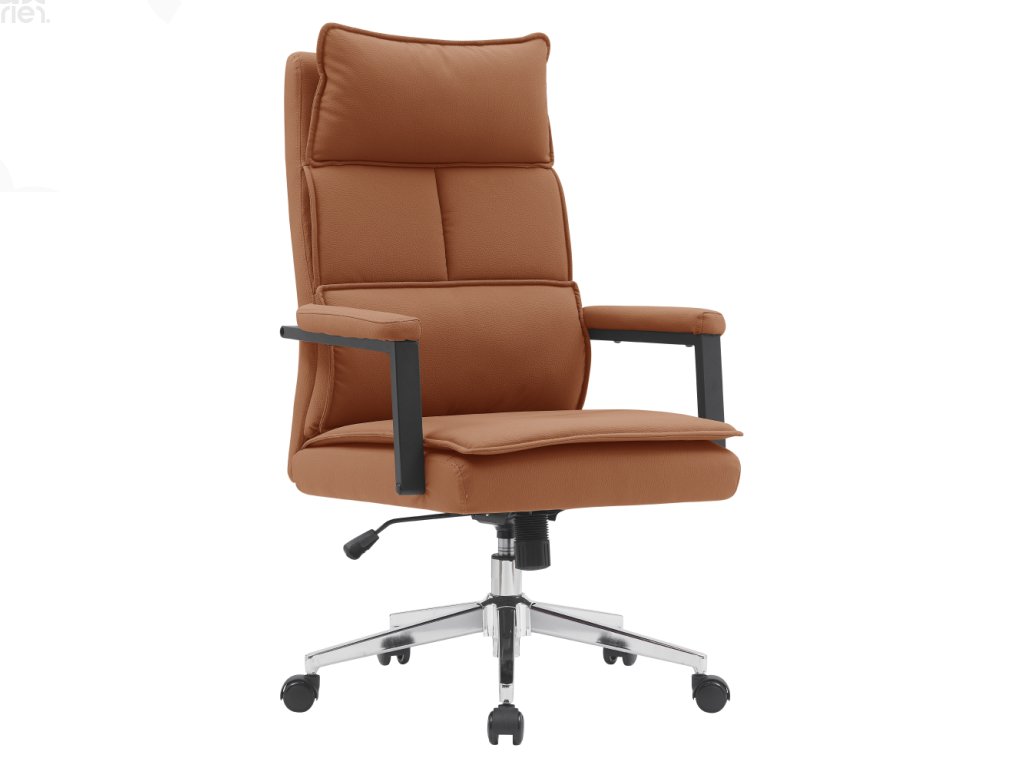 Kancelářské křeslo EPHER kombinuje pohodlí, odolnost a elegantní design. Čalounění z kvalitní ekokůže v hnědé camel barvě je odolné vůči oděru, s testem Martindale na 100 000 oděrek, takže si zachová svůj vzhled i při každodenním používání.