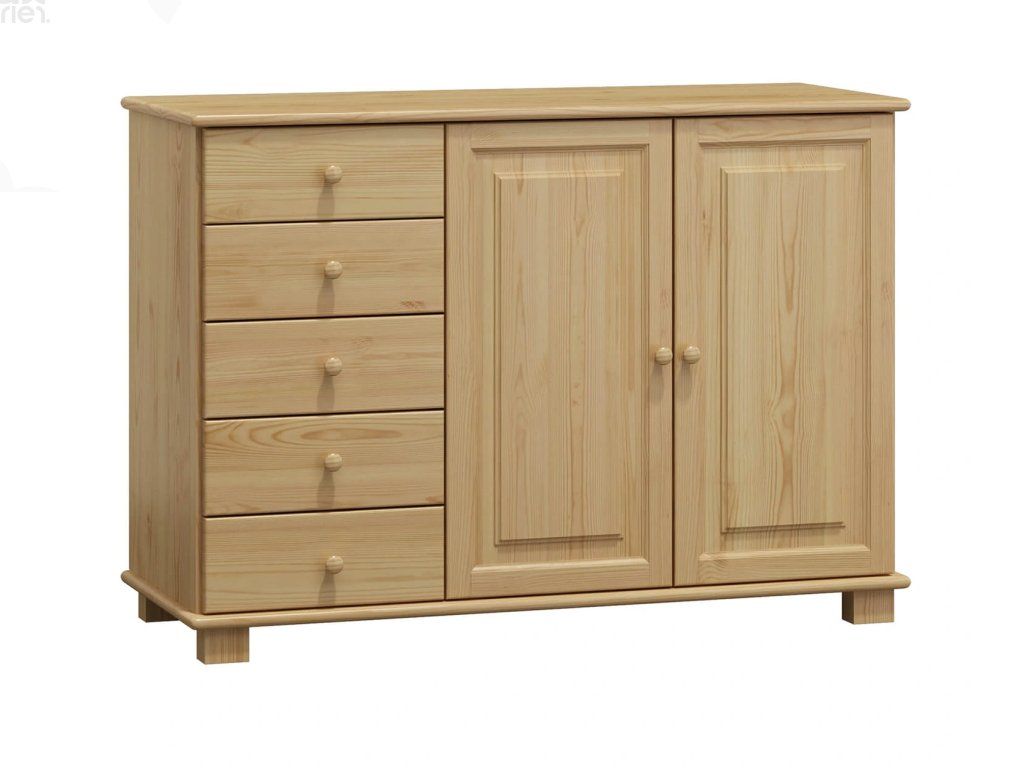 Dřevěná komoda CLASSIC KN-38 z masivu borovice spojuje nadčasový design s praktickou funkčností a stane se hodnotným doplňkem každého interiéru.