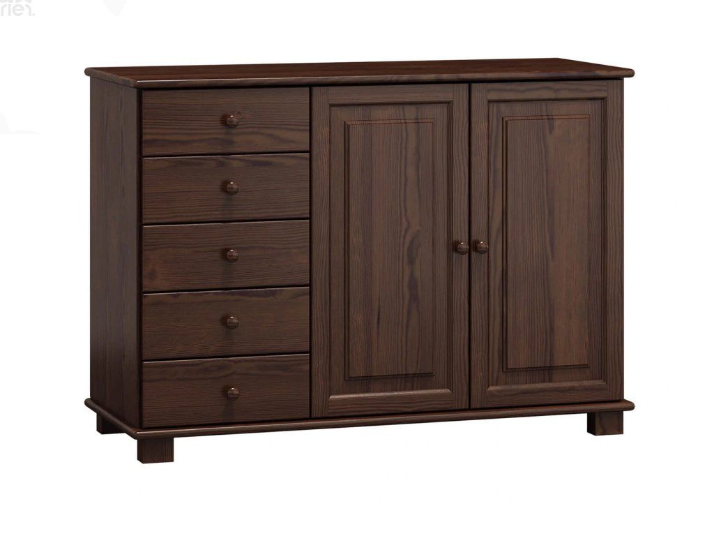 Vyrobena z masivního dřeva borovice o síle 2,2 cm, komoda zaručuje pevnost a dlouhou životnost. Precizní zpracování a kvalitní povrchová úprava zajišťují odolnost a estetickou dokonalost každého kusu. Komoda je dostupná v několika barevných variantách, takže ji snadno sladíte s vaším stylem a designem místnosti.