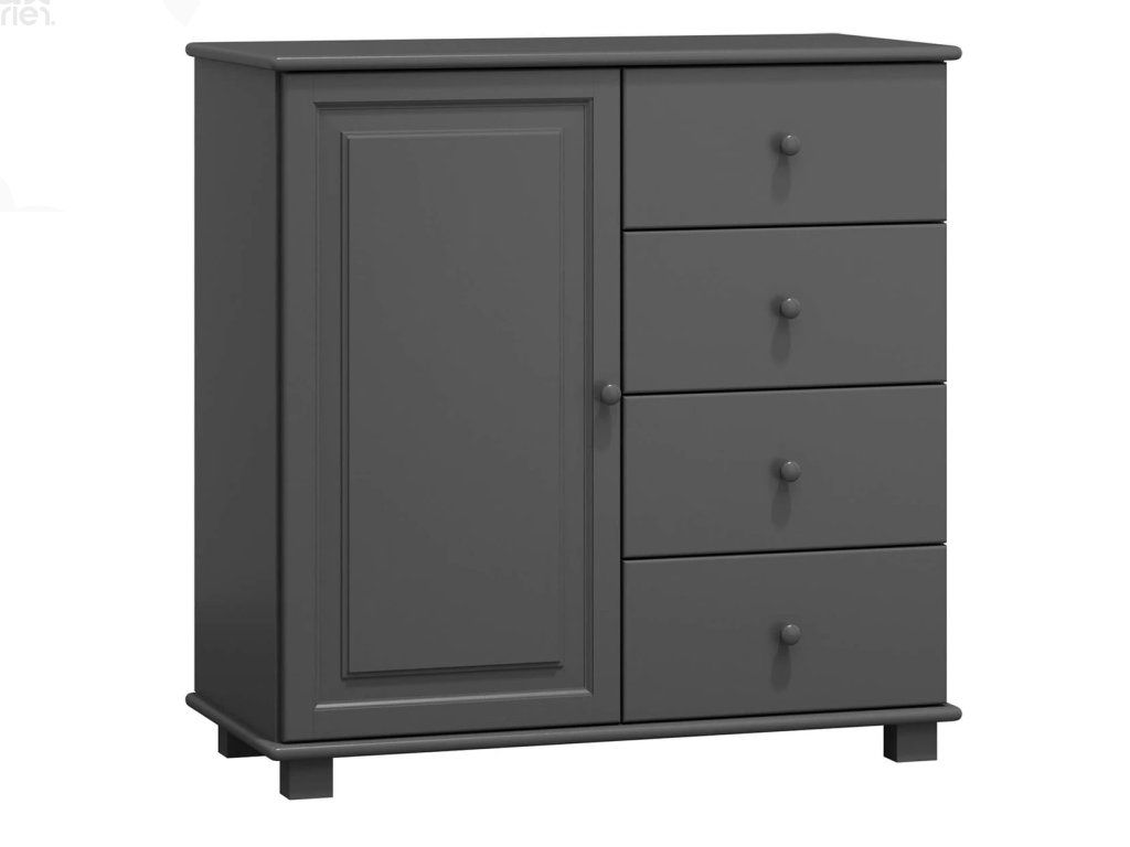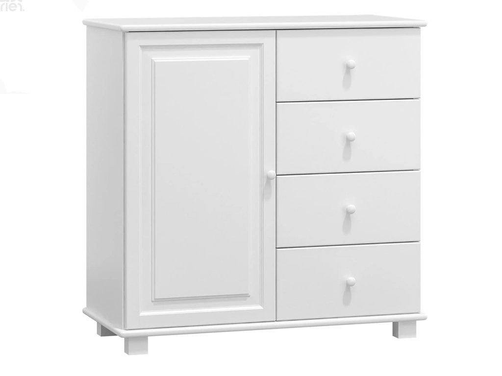 Komoda nabízí kombinaci zásuvek a dvířek, což umožňuje přehledné a pohodlné uložení věcí. Kovové výsuvy zajišťují tichý a hladký chod zásuvek, takže používání komody je příjemné každý den. Vyberte si z více barevných variant, které ladí s moderním i klasickým interiérem. Rozměry výška 100 cm, šířka 80 cm a hloubka 42 nebo 47 cm zajišťují, že komoda se hodí do ložnice, obývacího pokoje i předsíně.