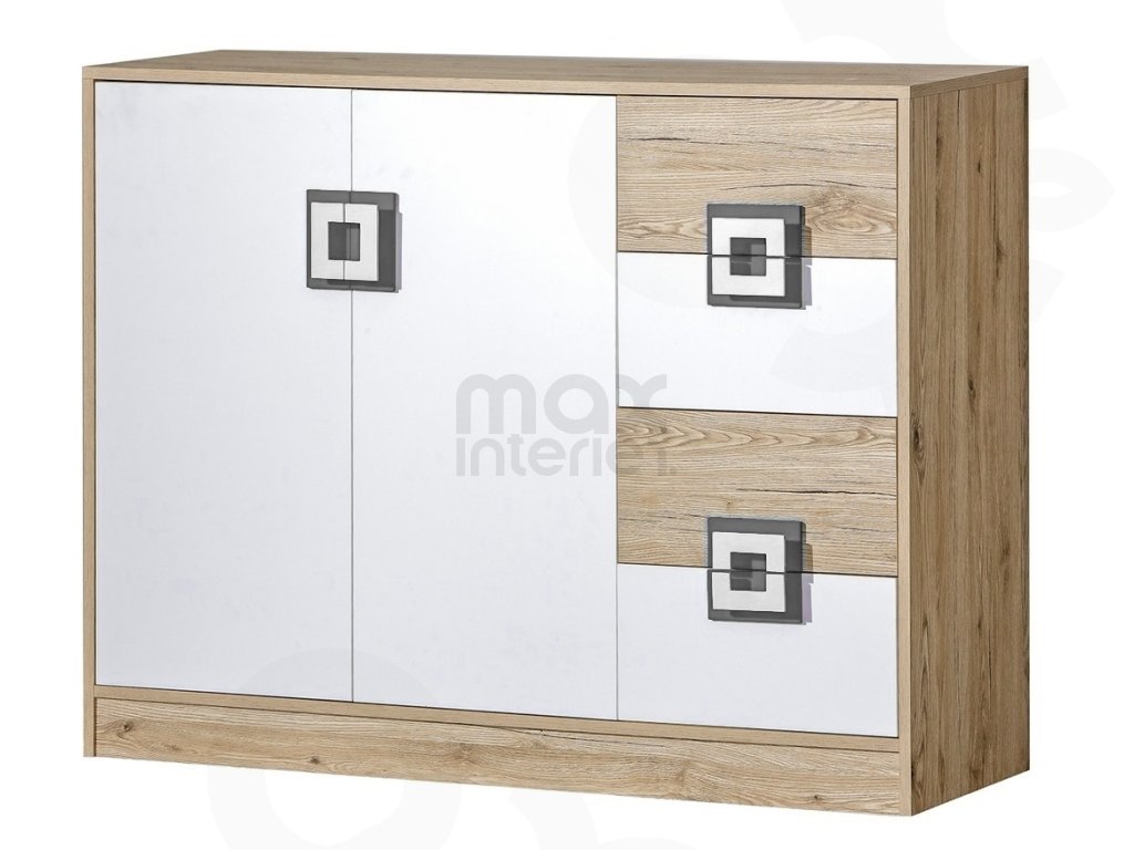 Hledáte moderní a praktickou skříň pro dětský nebo pokoj dospívajícího? Komoda NIKOLAS 8 z kolekce Dětský pokoj Nikolas nabízí nejen elegantní design, ale i maximální funkčnost. Díky kombinaci světlého dubu, bílé a šedé se hodí do každého interiéru a zajímavé úchyty přitáhnou pohled každého dítěte.