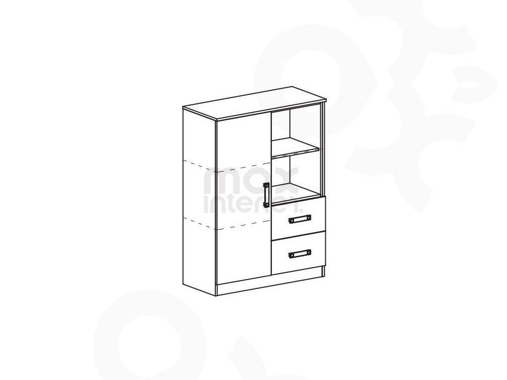 Praktické úložné řešení: Komoda nabízí 2 zásuvky, 1 dvířka a otevřený prostor/polici, což umožňuje pohodlné uspořádání oblečení, hraček, knih i školních potřeb.