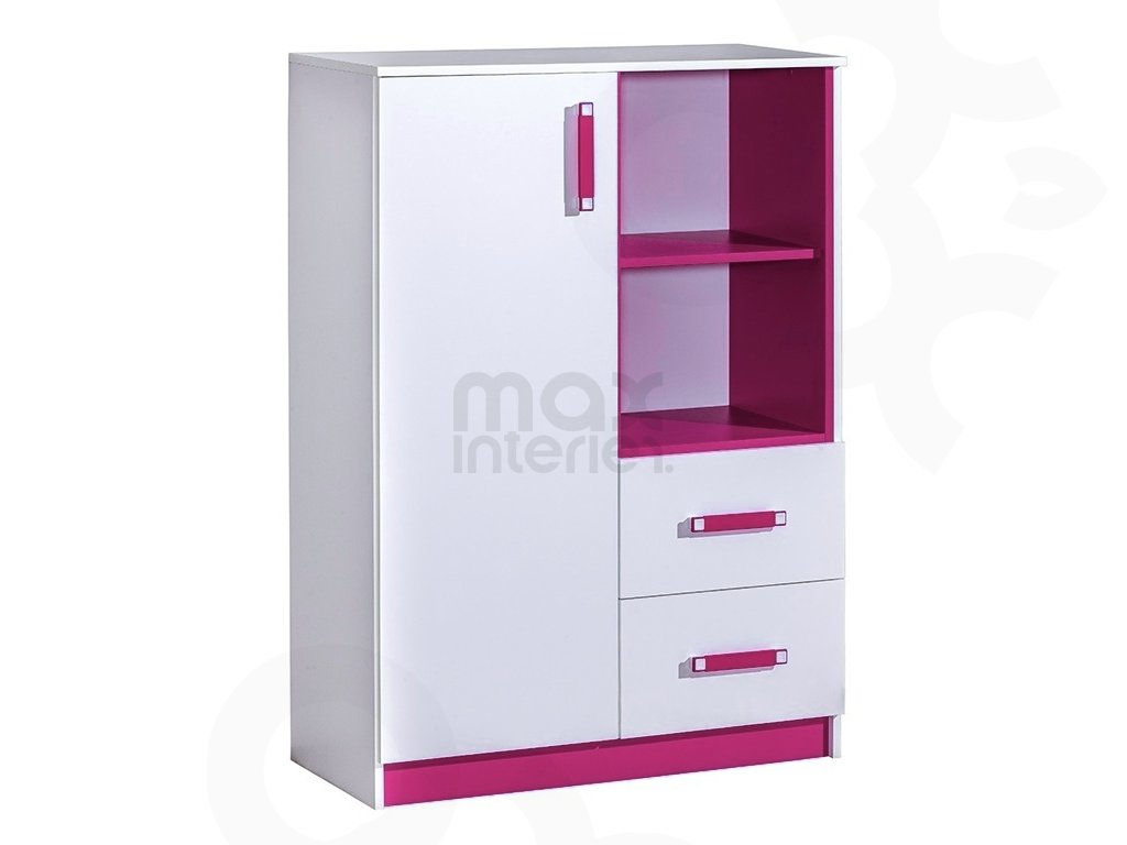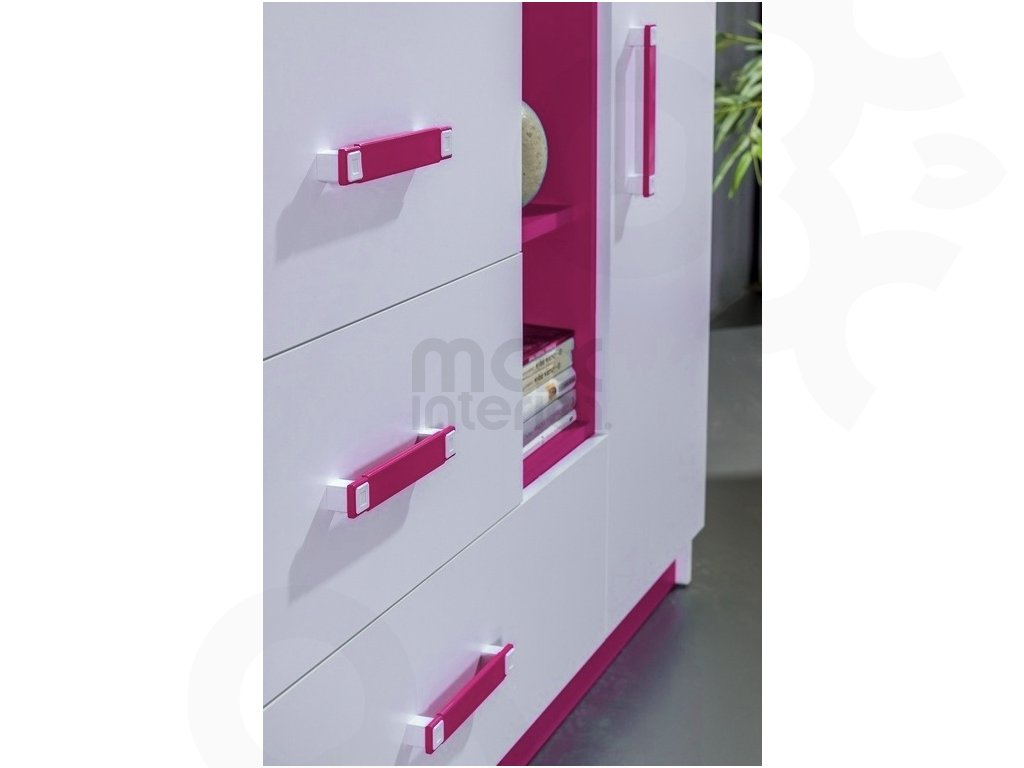 Komoda do dětského pokoje TRAFICO 6 bílá / růžová