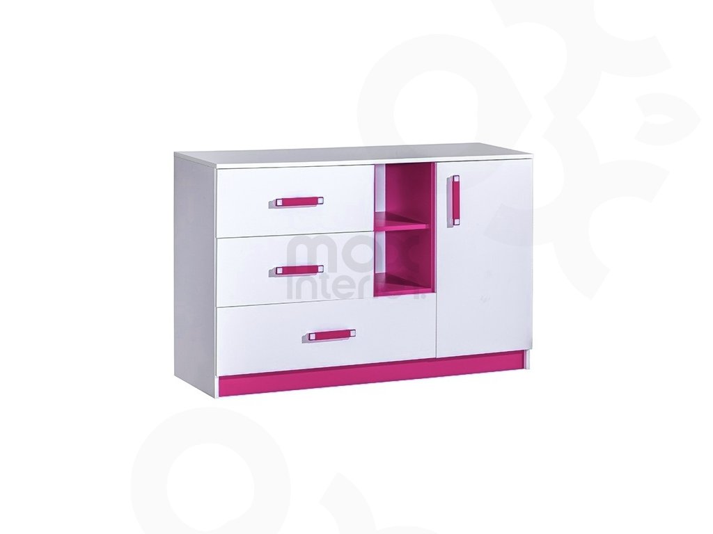 Komoda do dětského pokoje TRAFICO 7 bílá / růžová