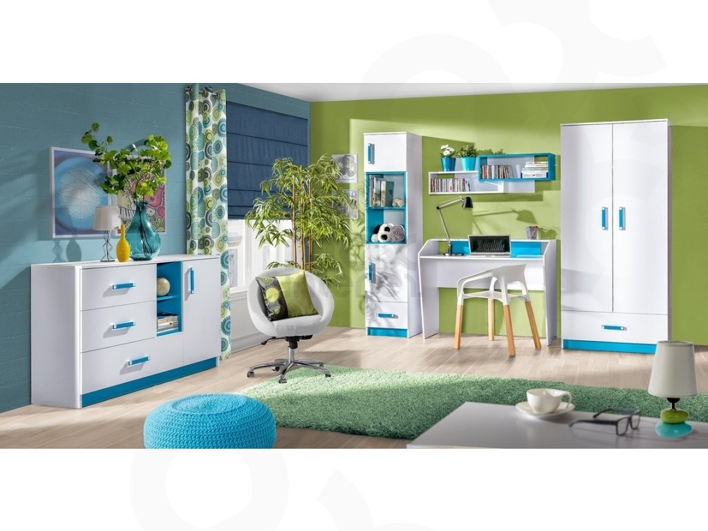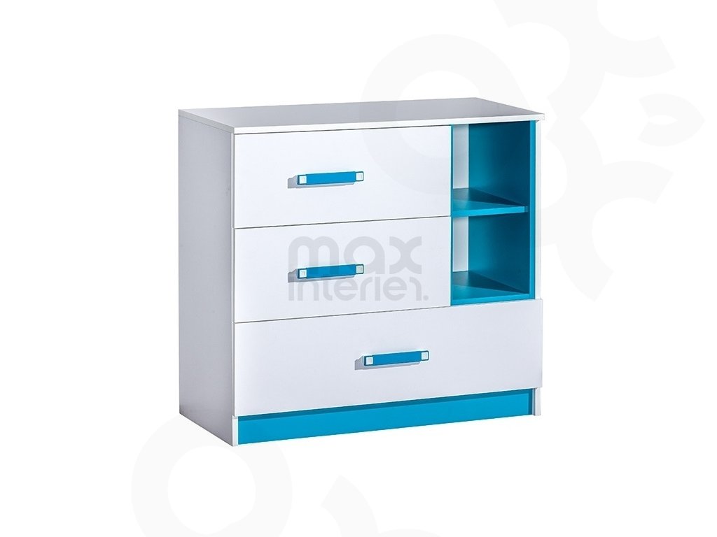 Komoda do dětského pokoje TRAFICO 8 bílá / tyrkys