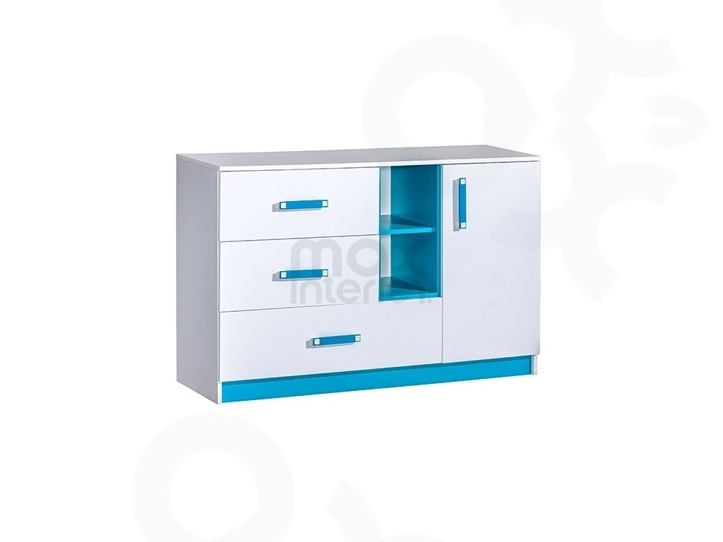 Komoda do dětského pokoje TRAFICO bílá / tyrkys