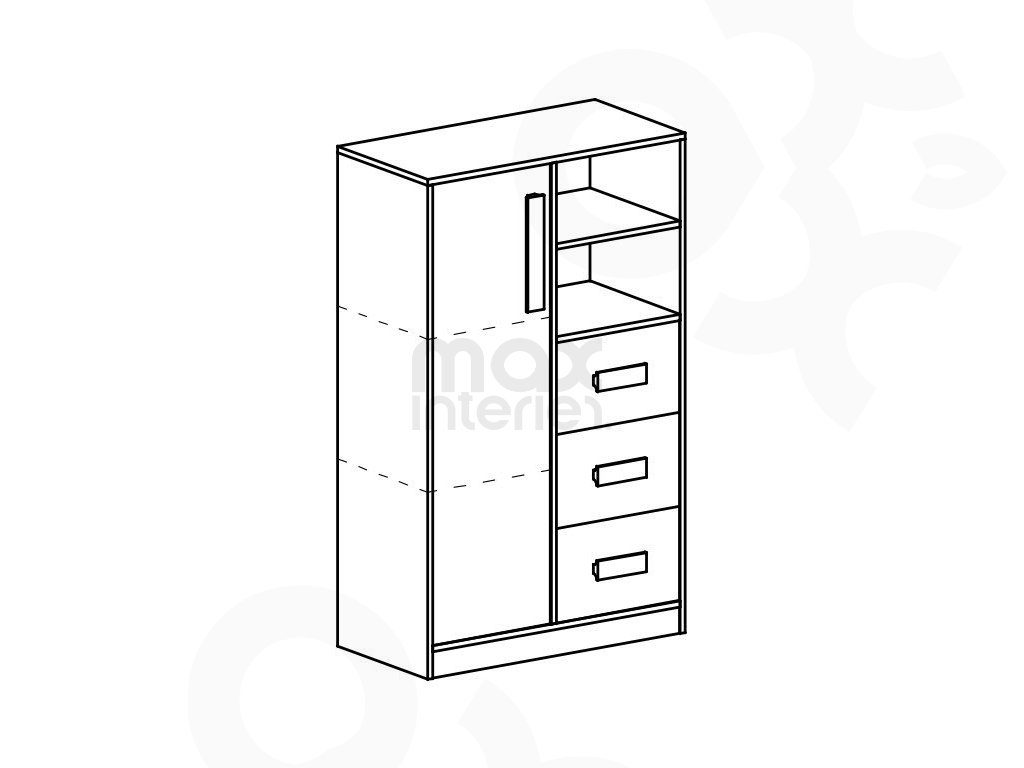 Praktické úložiště: 3 prostorné zásuvky, dvířka a otevřená police pro snadné a přehledné uspořádání věcí.