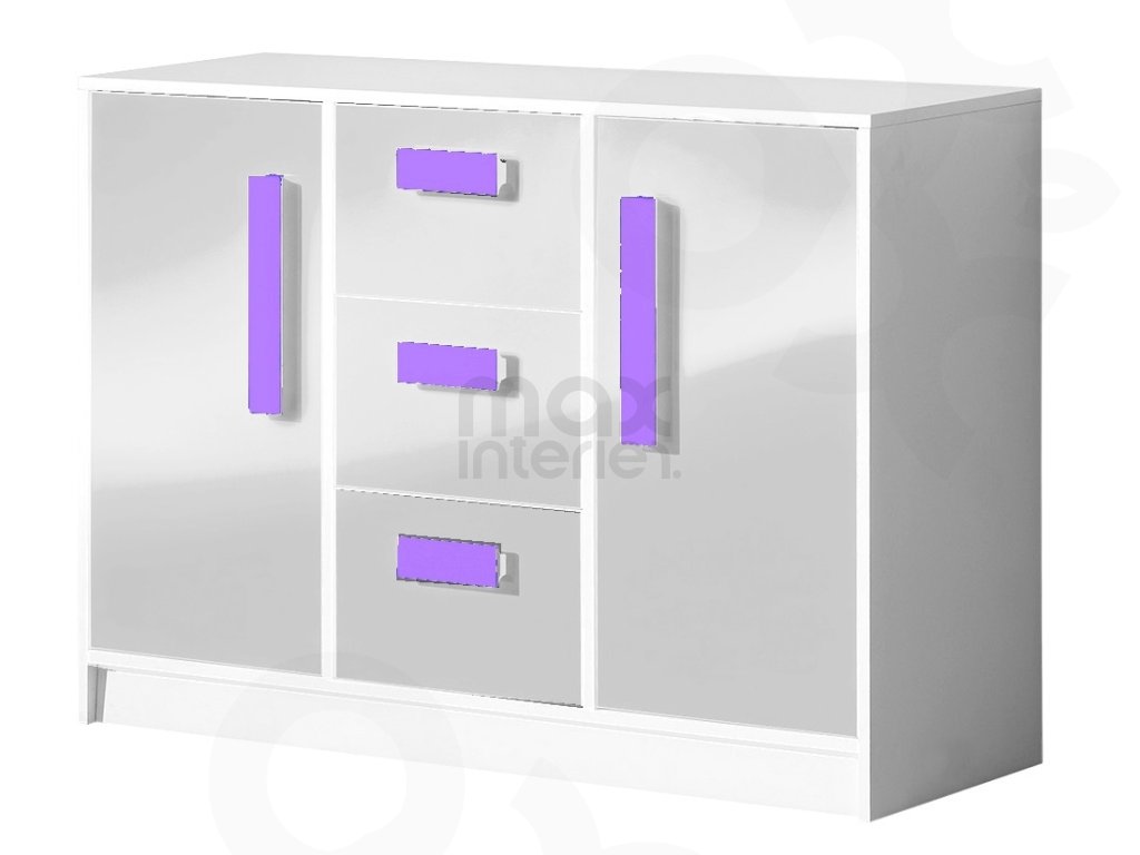 Komoda GALIO 6 do dětského pokoje - bílá lesk / fialová
