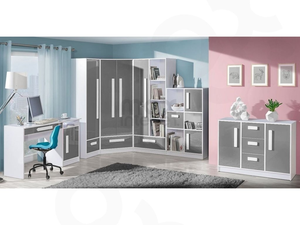Komoda GALIO 8 do dětského pokoje - bílá / šedá lesk