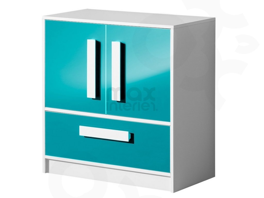 Komoda GALIO 8 do dětského pokoje - bílá / tyrkys lesk