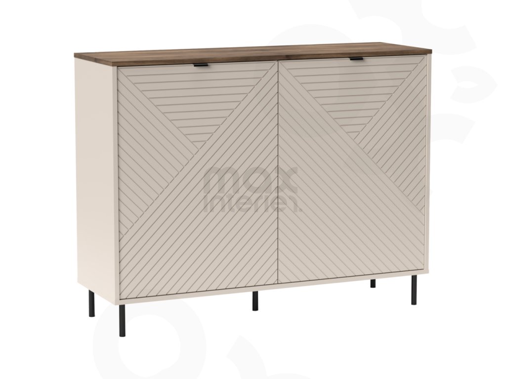 Komoda ESCANOR 2DS kombinuje moderní design s praktickým úložným prostorem. Díky elegantní kombinaci dekoru kašmír a dub castello se hodí do obývacího pokoje, ložnice i pracovny.