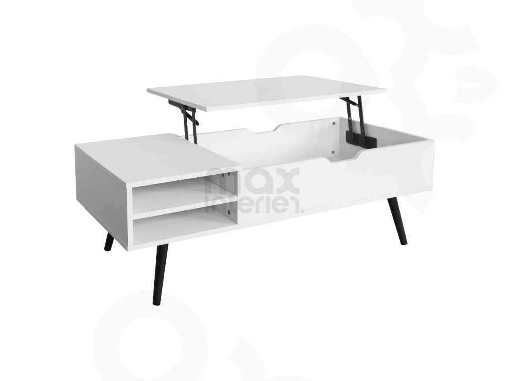 Stylový konferenční stolek BENNARD kombinuje elegantní bílou s černými detaily a nabízí praktické řešení pro každodenní využití. Vrchní deska je výškově nastavitelná, což umožňuje pohodlné používání při odpočinku i práci.