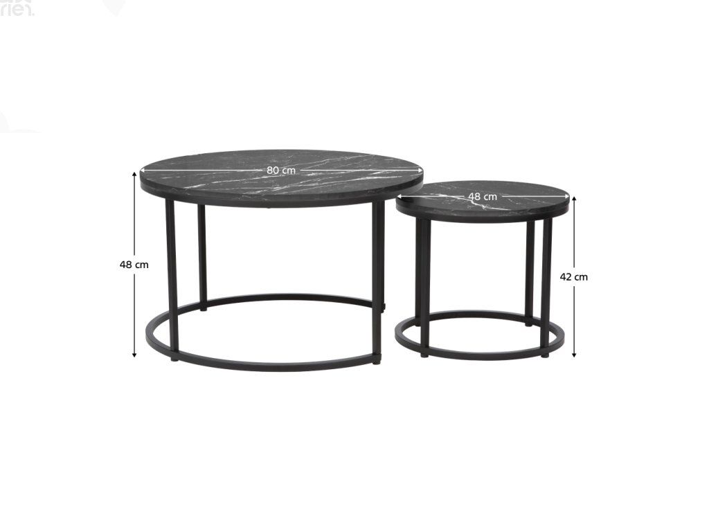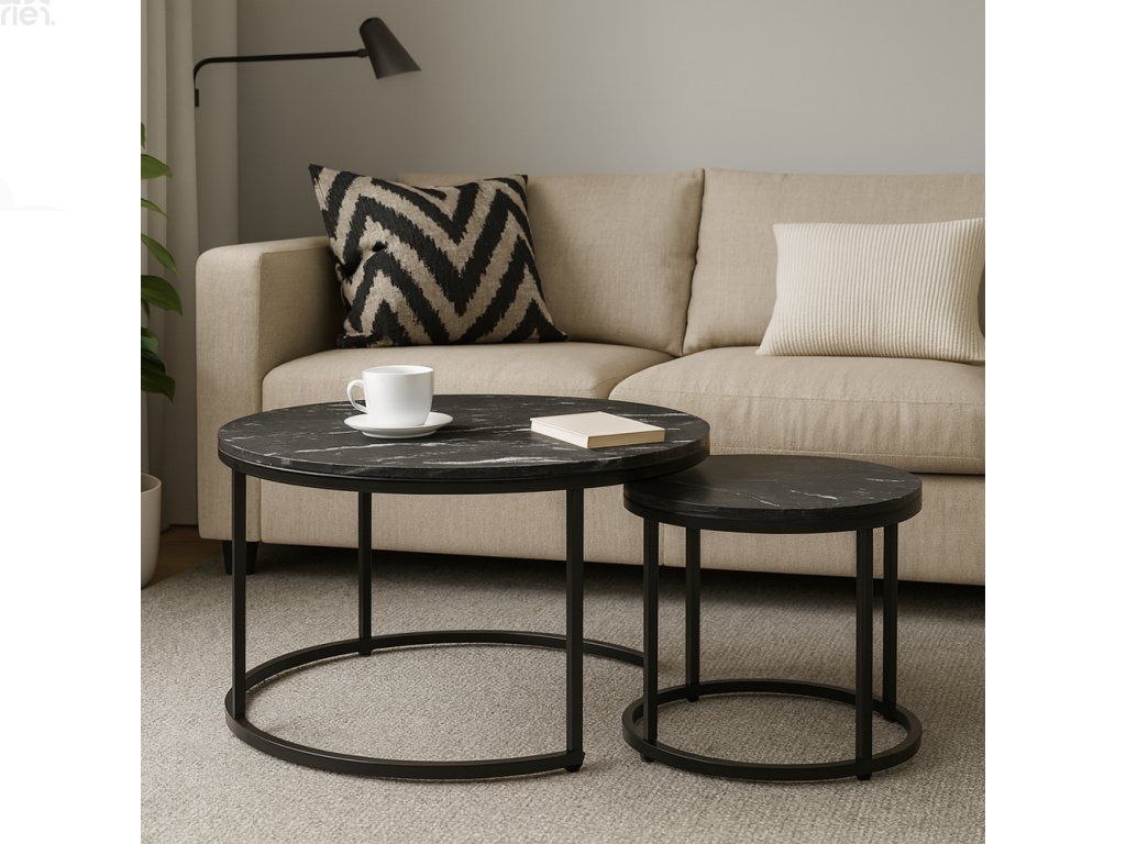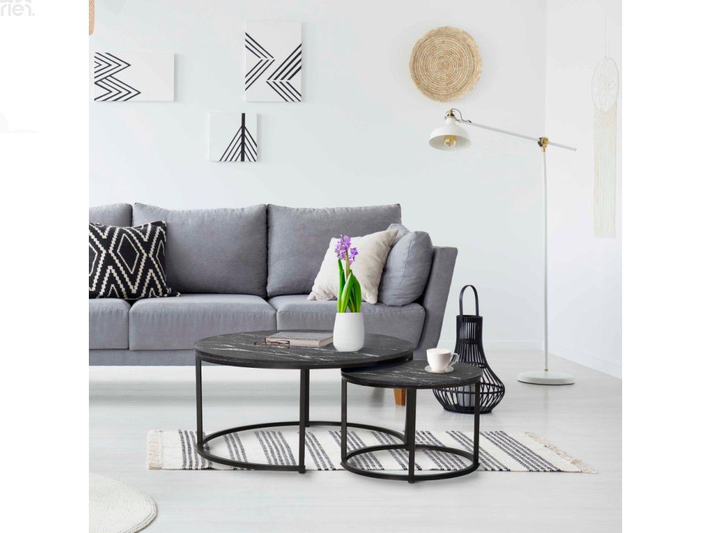 Konferenční stolek CHARLY je praktický set dvou stolků v elegantní kombinaci šedý / černý, který skvěle doplní váš obývací pokoj. Větší stolek o průměru 80 cm a výšce 48 cm a menší stolek o průměru 48 cm a výšce 42 cm lze prakticky zasunout jeden pod druhý, což šetří místo a nabízí flexibilní řešení pro každodenní použití.