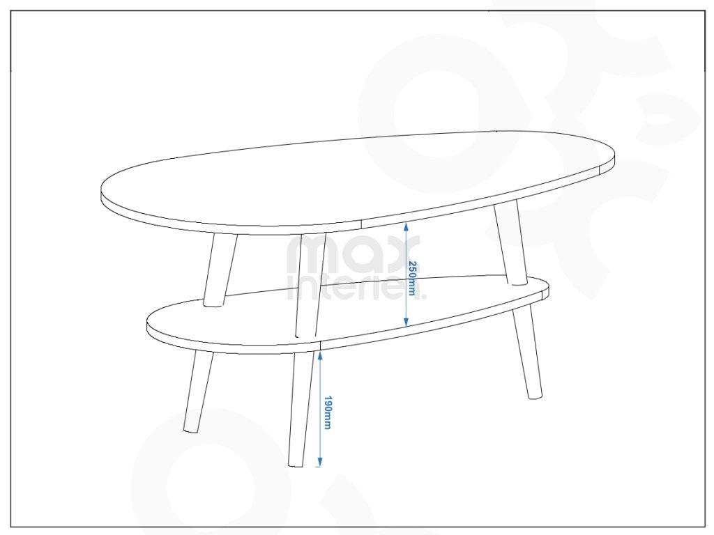 Konferenční stolek MERKURY – Oválný s policí a dřevěnými nohami ve skandinávském stylu