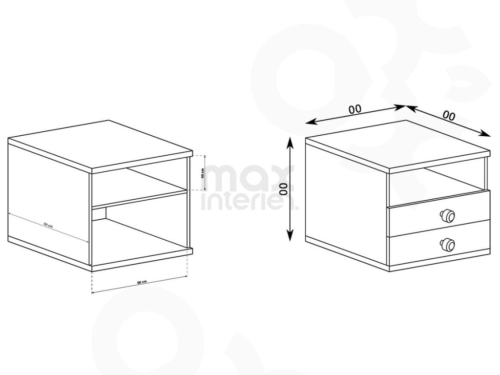 2x noční stolek s nožkama (48 x 61 x 40,6 cm) – praktický doplněk pro lampičky a osobní věci.
