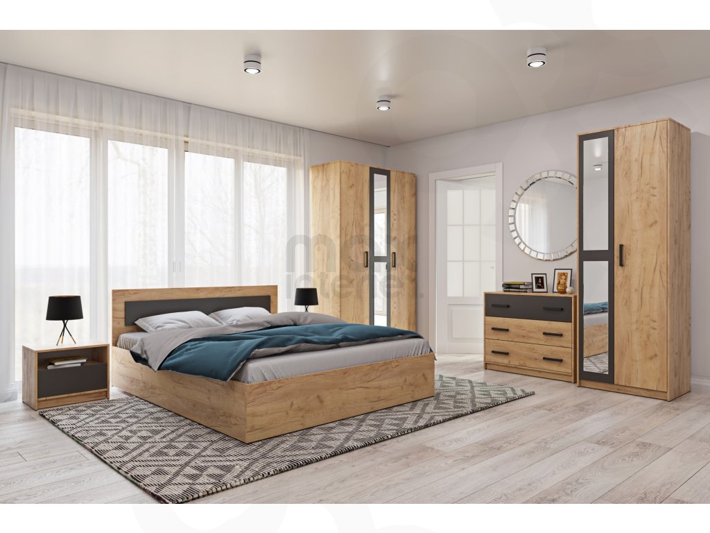 Ložnicová sestava | Komplet ložnice BOXBY – dub kraft zlatý / grafit šedý