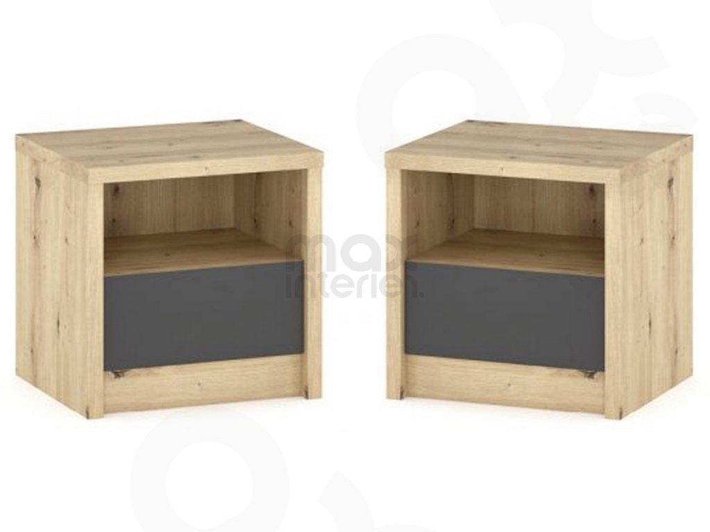 2 noční stolky (46,4 x 45,6 x 39,3 cm) – praktický prostor pro lampičku nebo drobné předměty.