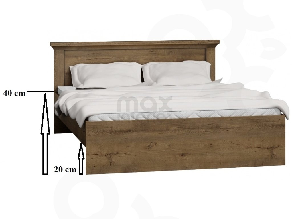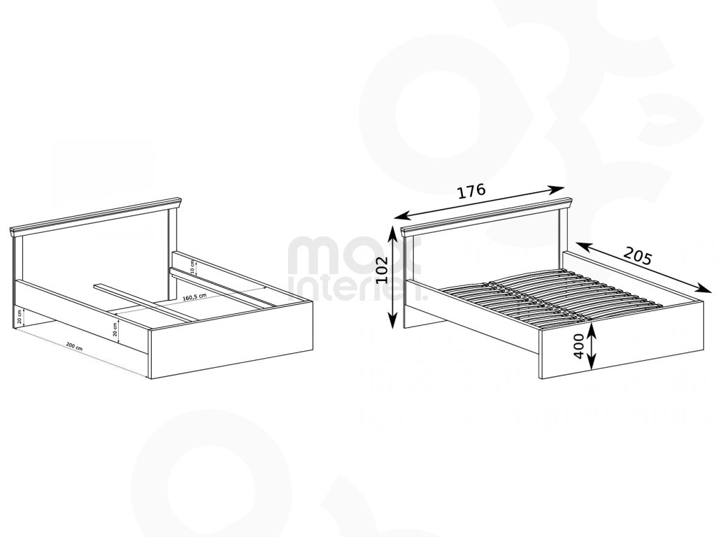 Postel (205 × 102 × 176 cm) – dodáváme s roštem, doporučený rozměr matrace 160 × 200 cm nebo 2 × 80 × 200 cm.