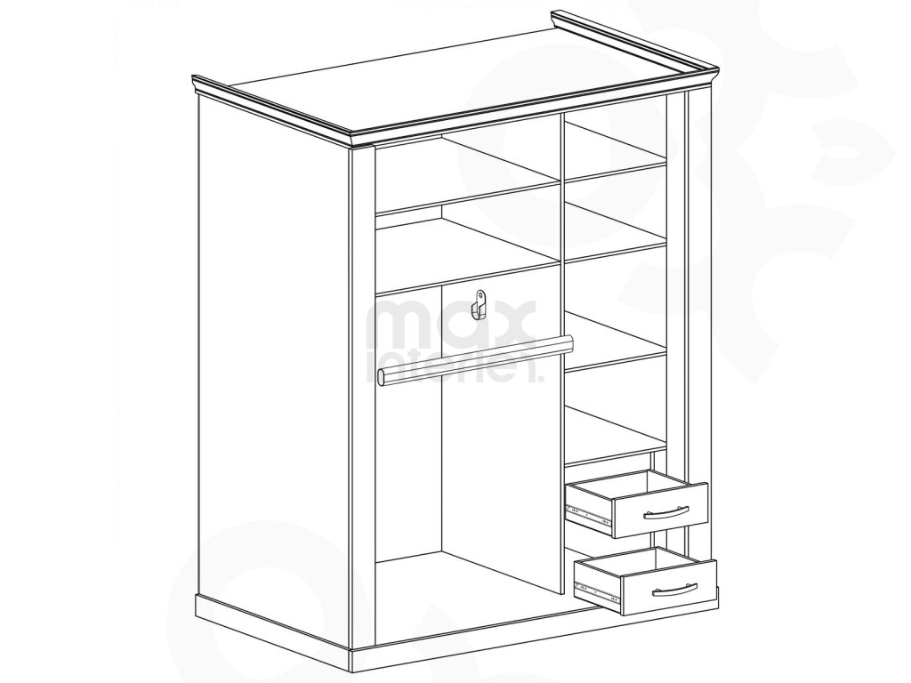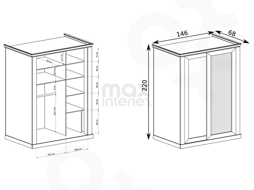 Šatní skříň (146 × 220 × 68 cm) – prostorná skříň pro oblečení a doplňky.