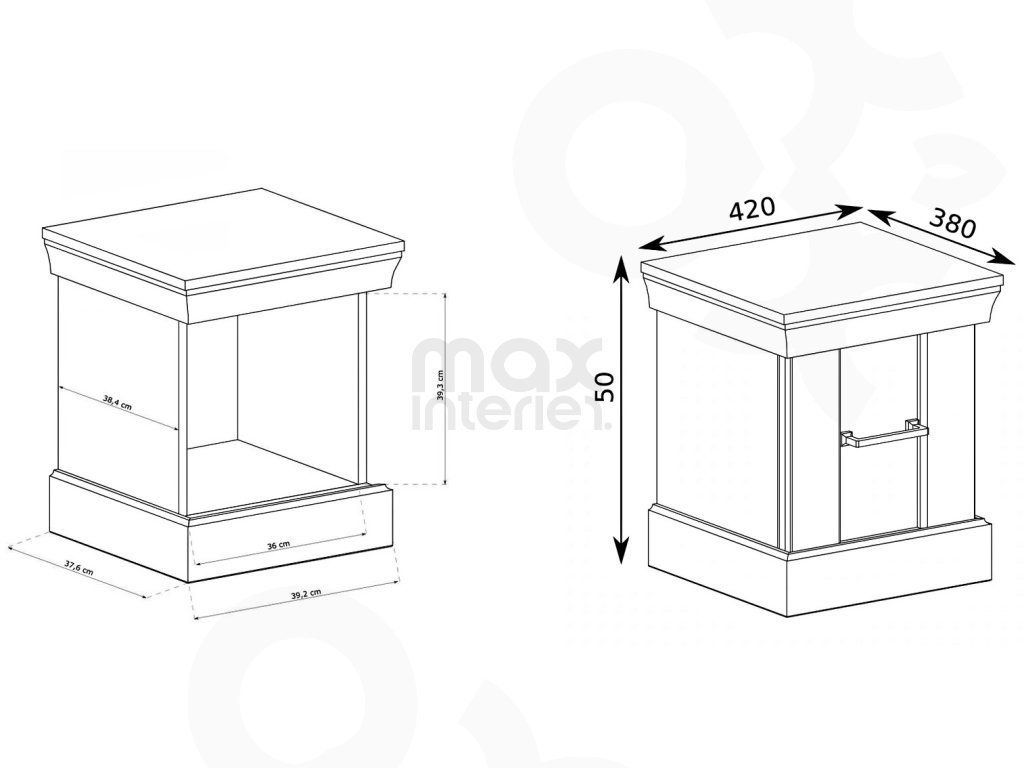 Noční stolek (39 × 50 × 37 cm) – praktický doplněk pro lampu či osobní drobnosti.