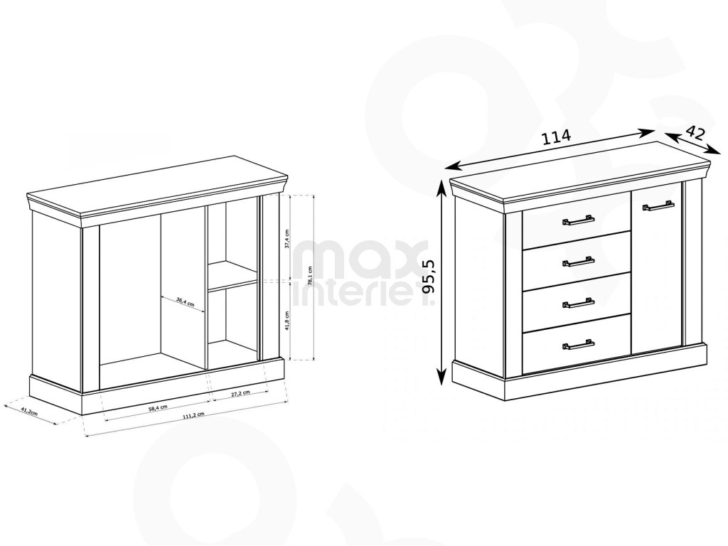 Komoda (114 × 96 × 42 cm) – elegantní úložný prostor pro každodenní potřeby.