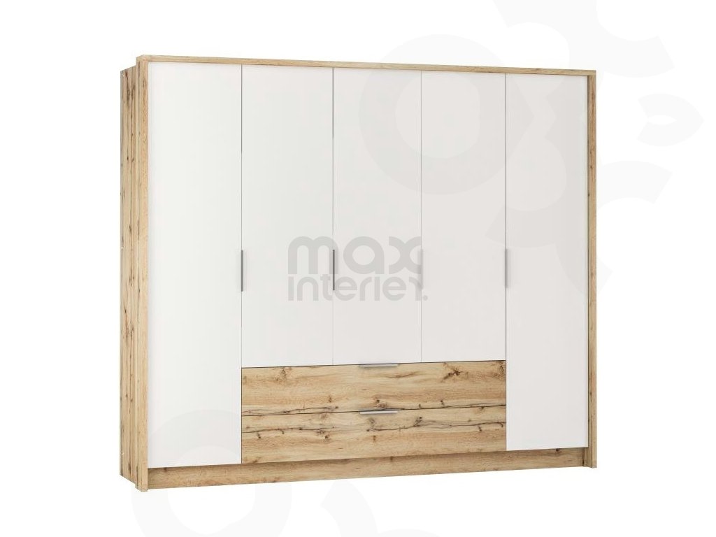 Šatní skříň 5D2S (255 x 217 x 65 cm) – prostorné uložení oblečení a doplňků.