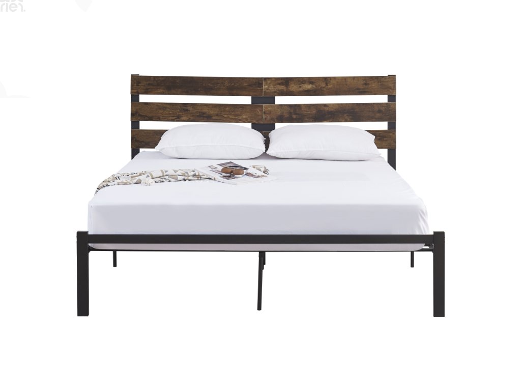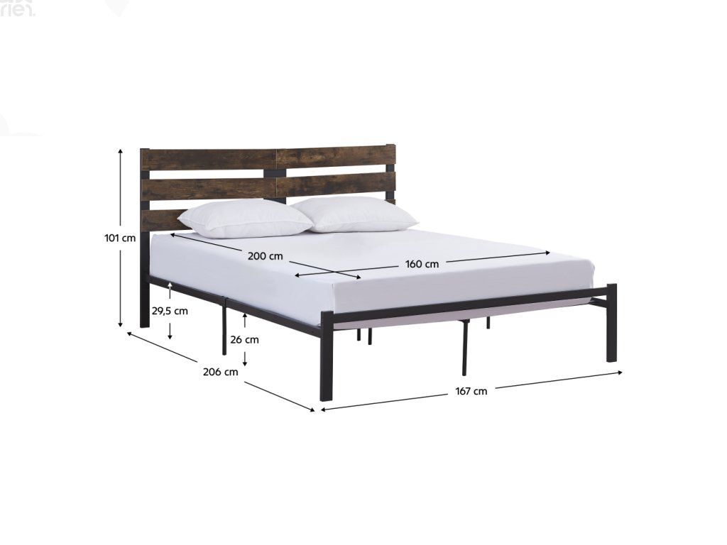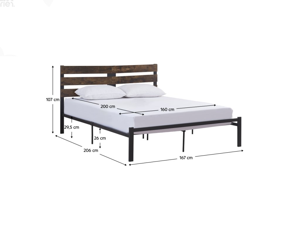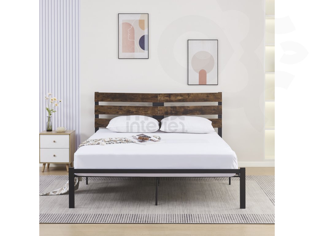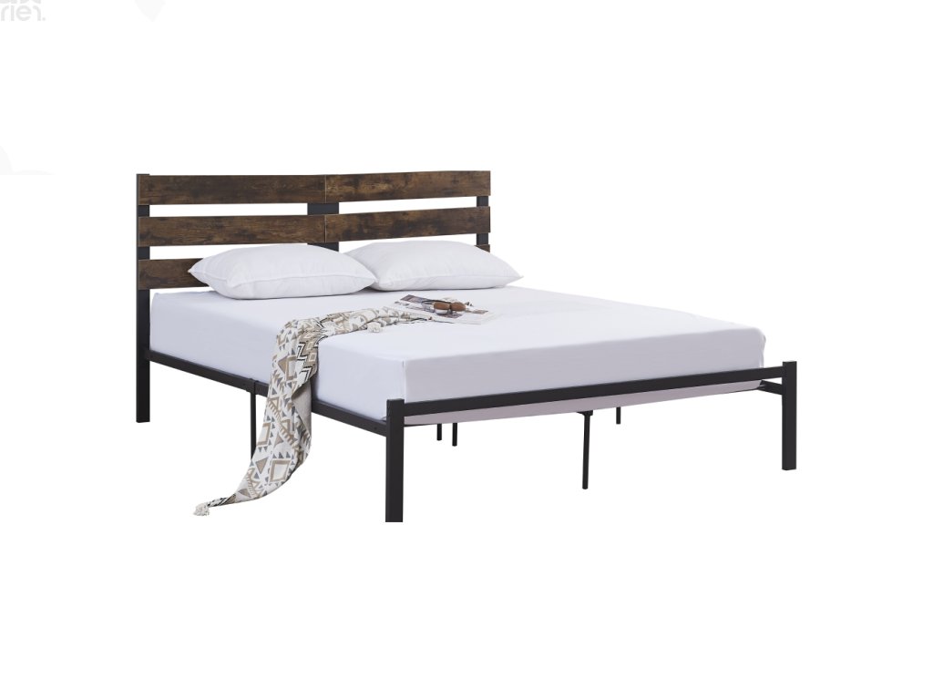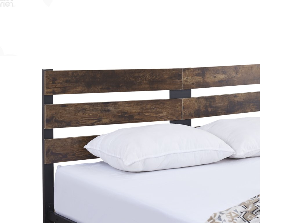 Manželská postel PUEBLA 160×200 – dub rustikál / černý kov