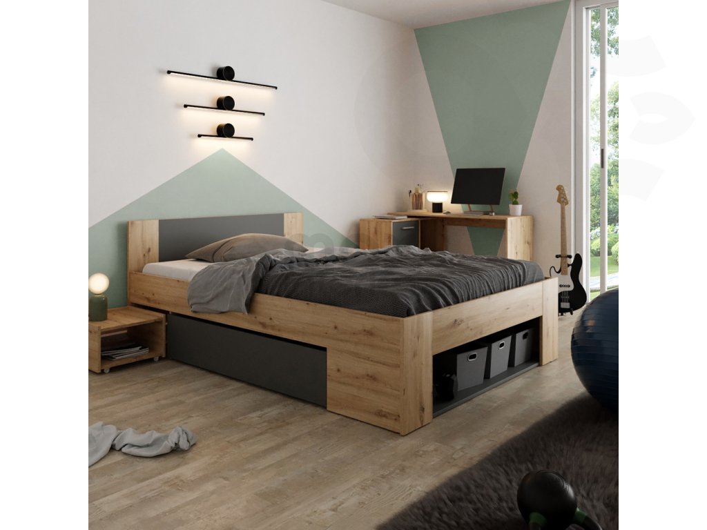 Manželská postel UNIS 140x200 | Dub Artisan / Antracit – styl a komfort pro váš spánek