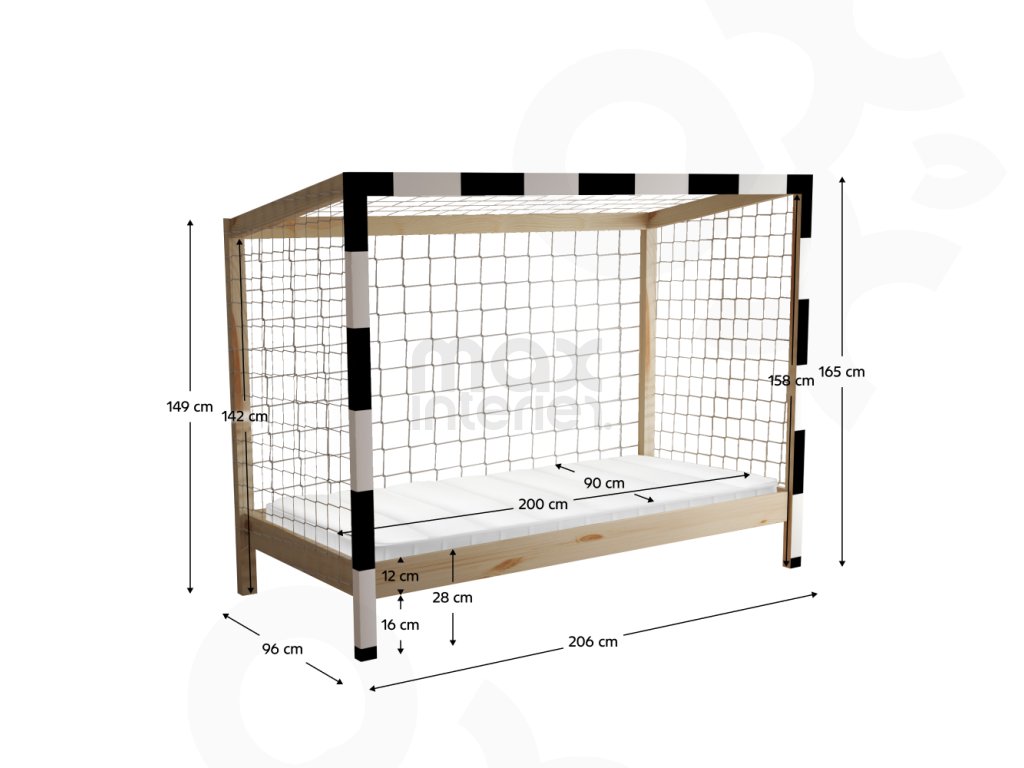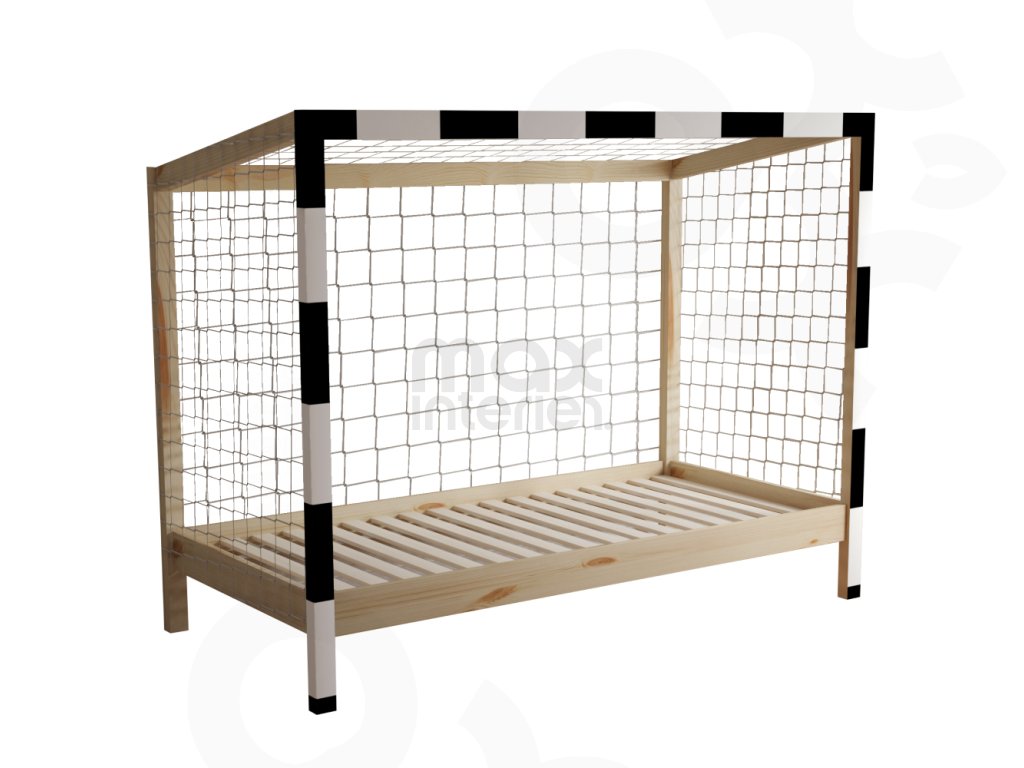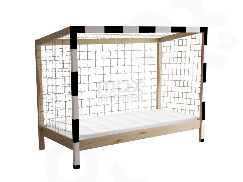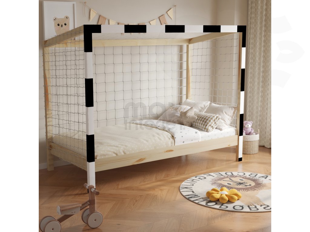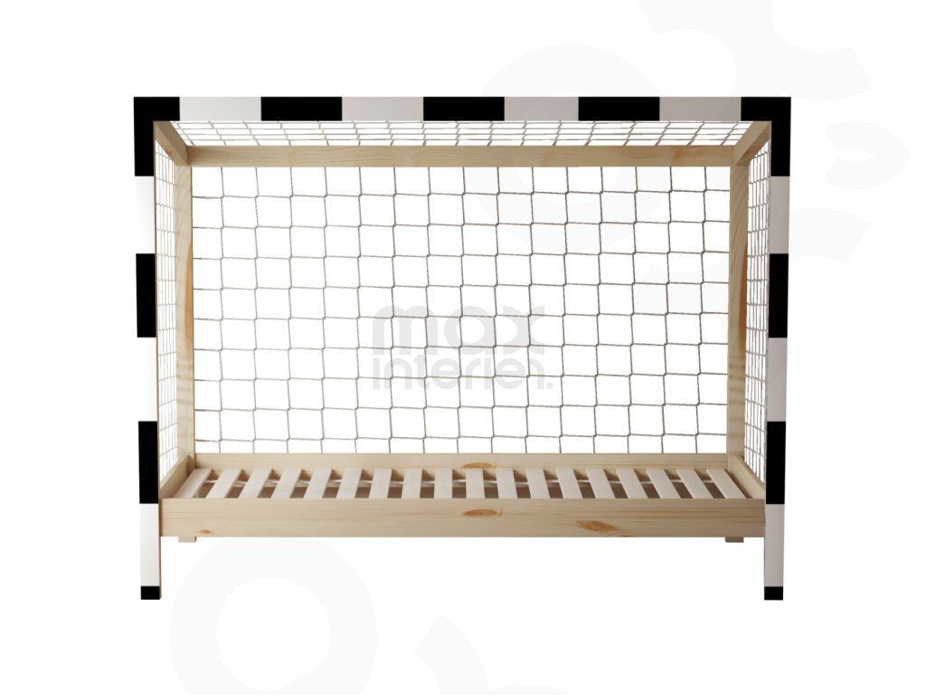 Dětská postel FOTBAL ve tvaru fotbalové brány udělá radost každému malému sportovci a promění pokoj v originální místo plné fantazie. Je vyrobena z masivu borovice o tloušťce 2 cm, který zajišťuje pevnost, stabilitu a dlouhou životnost.