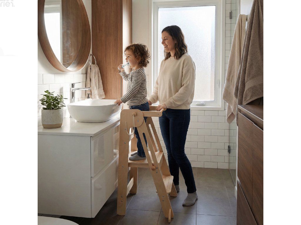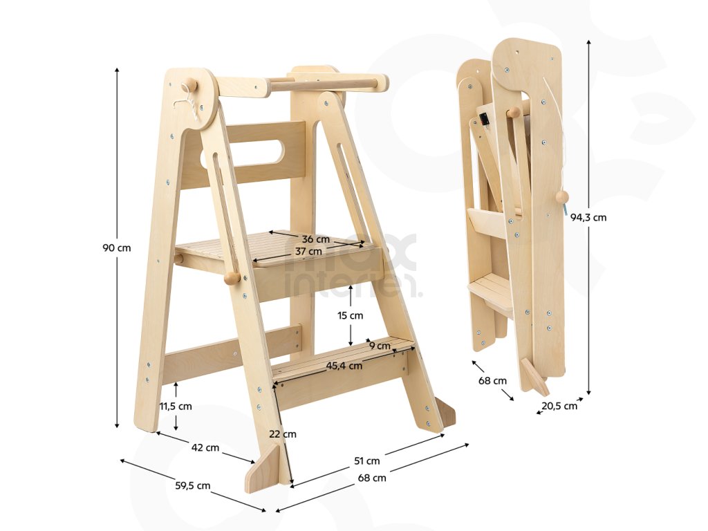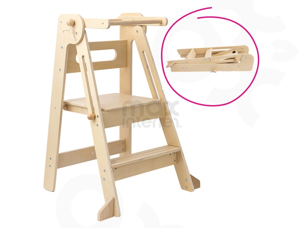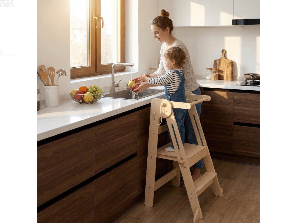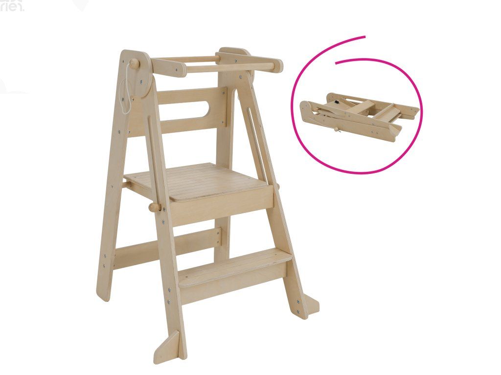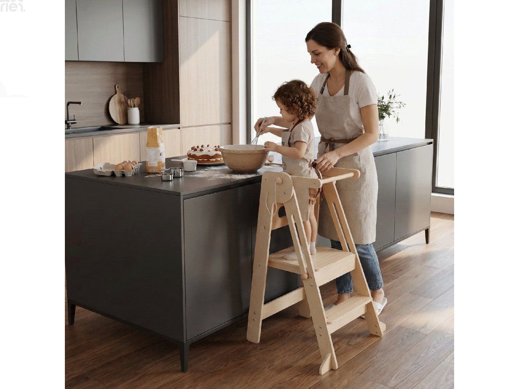 Objevte Montessori skládací učící věž PLAY KIDS – praktického pomocníka pro zvídavé děti a aktivní rodiče. Tato dřevěná učící věž v přírodním barevném provedení podporuje samostatnost, nezávislost a sebedůvěru dítěte, když se zapojuje do každodenních činností v kuchyni, koupelně nebo při hrách.