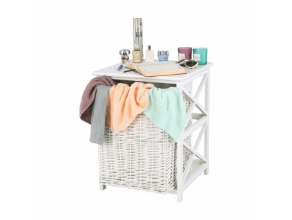 Noční stolek, dřevo / proutí/látka, bílá, Rafaello