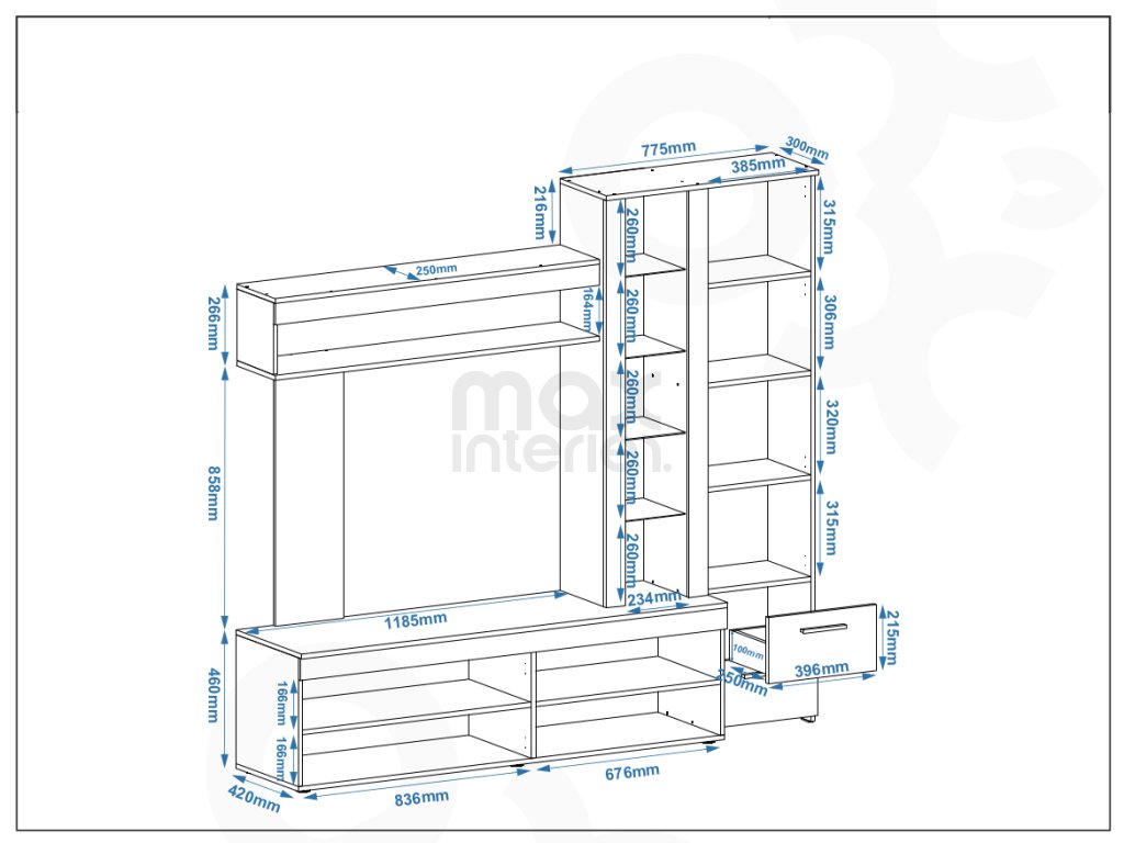 - Vysoce kvalitní materiály – Obývací stěna je vyrobena z odolných materiálů, které zajišťují dlouhou životnost a odolnost vůči každodennímu používání.