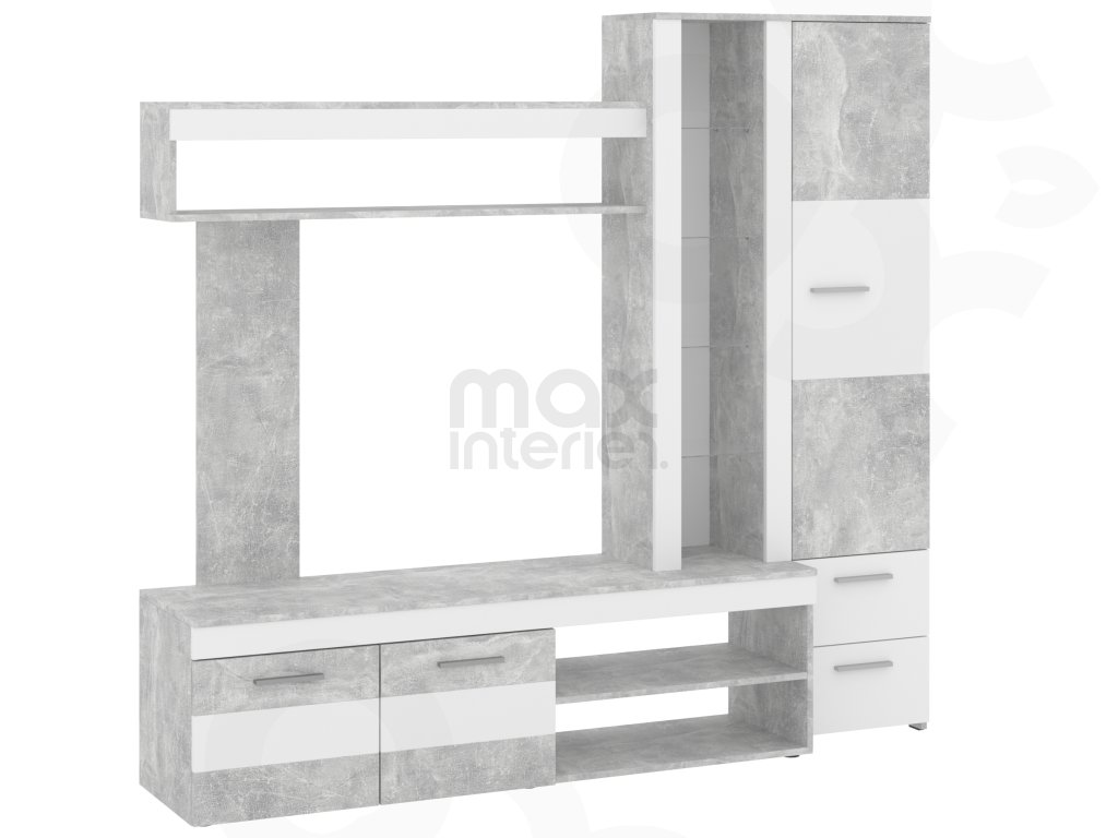 Obývací stěna NEAPOL | BETON + BÍLÁ
