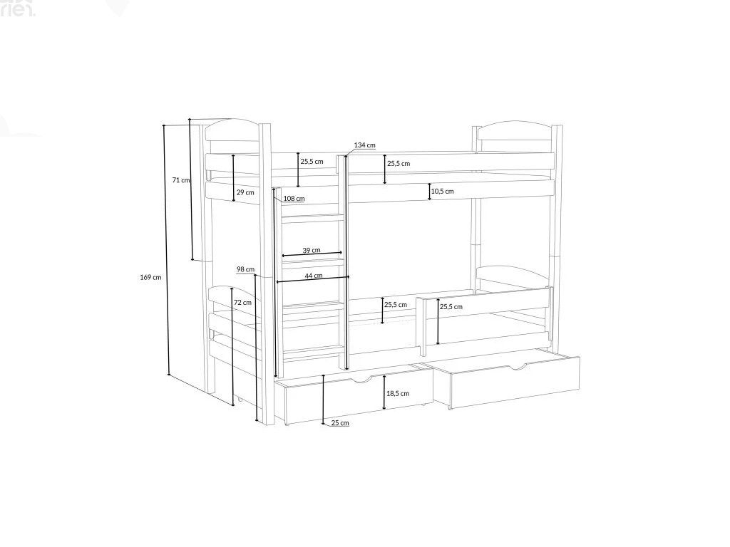 Patrová postel ADRIANA PINE vč. roštů + ŠUPLÍKY