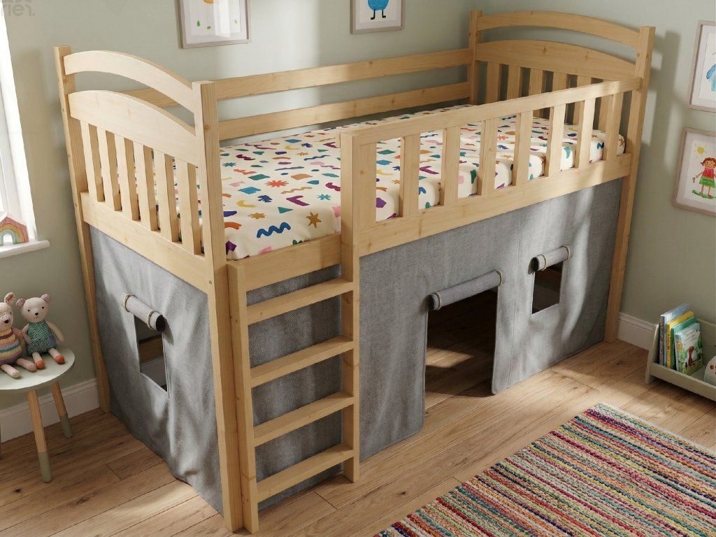 Patrová postel je vyrobena z masivu borovice, spoje jsou řešeny bukovými kolíky spolu se zámkovým šroubem. Snadná montáž dle přiloženého obrázkového návodu. Síla použitého materiálu je 2,6 cm.
