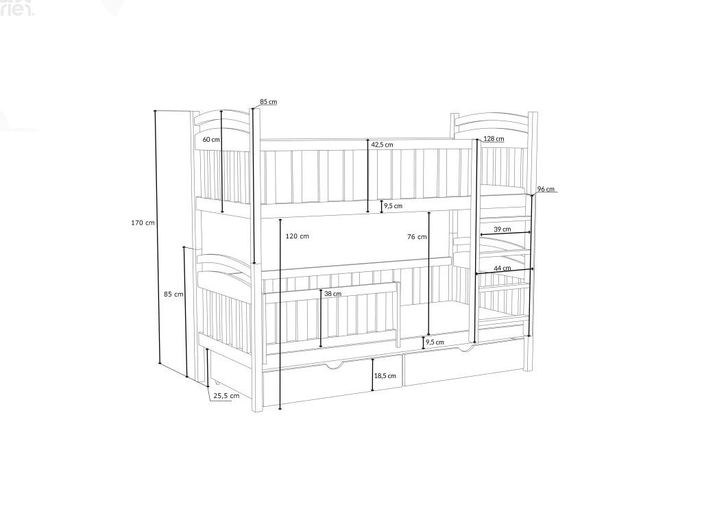 výška spodní ložné plochy: 30 cm