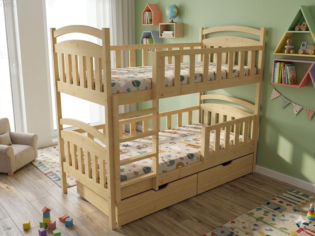 Patrová postel se zábranou ANNA PINE vč. roštů + ŠUPLÍKY