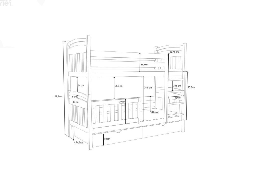 Patrová postel BRUNO PINE vč. roštů + ŠUPLÍKY