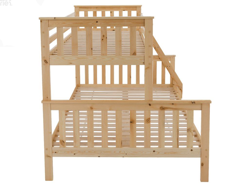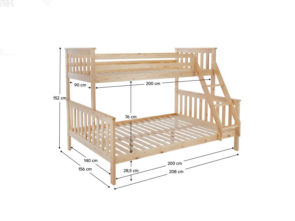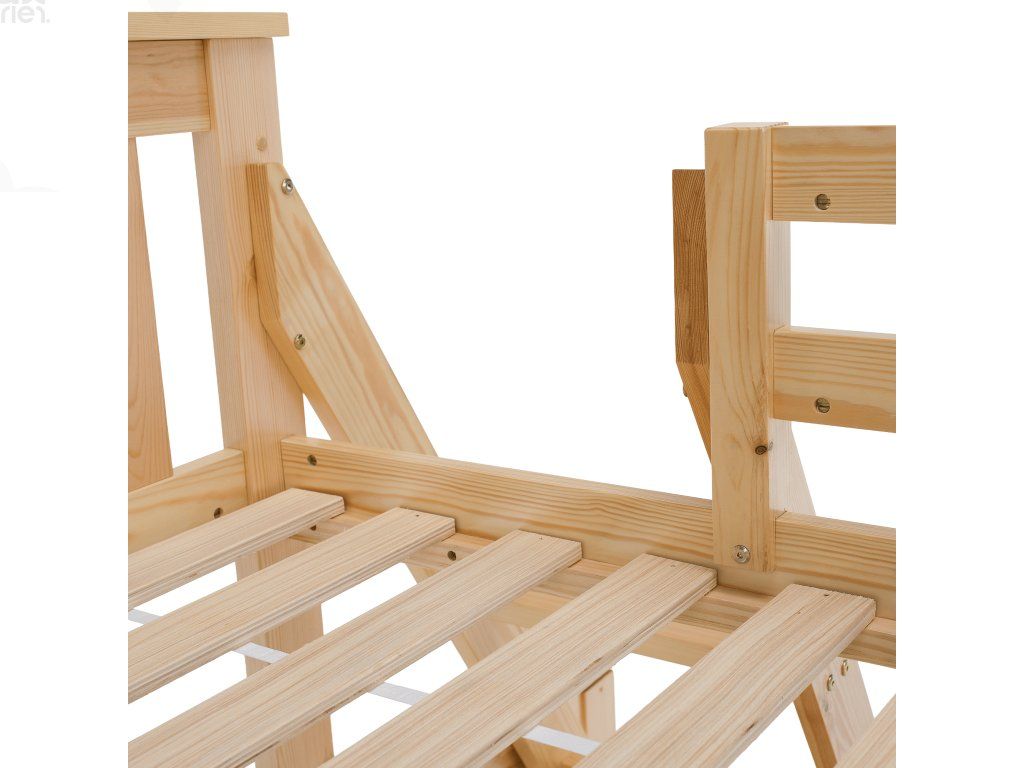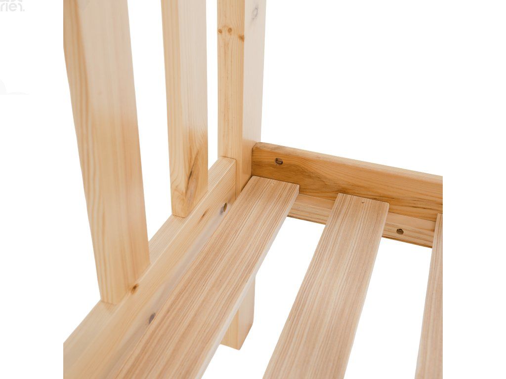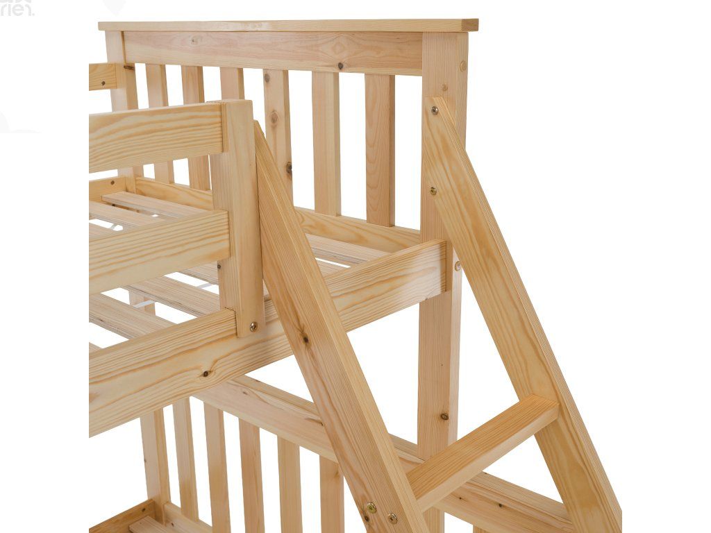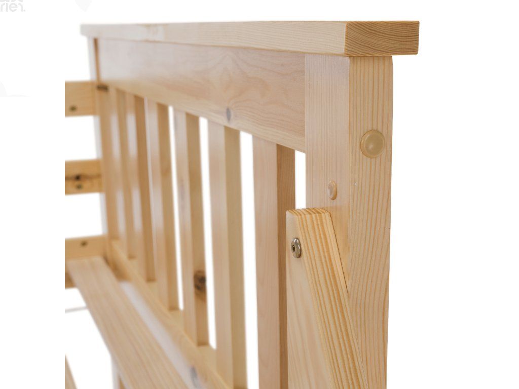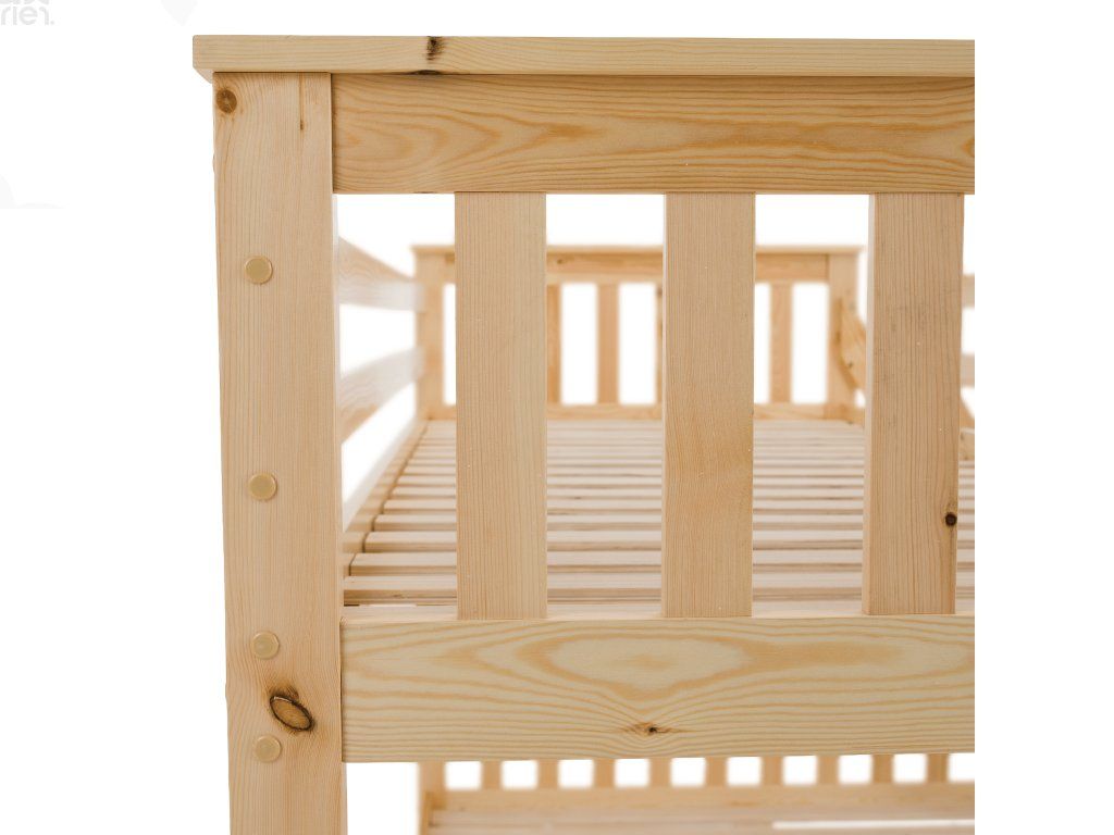 Konstrukce je vyrobena z kvalitního borovicového dřeva o tloušťce 20 mm, která zaručuje pevnost a dlouhou životnost. Nohy postele (30x70 mm) dodávají celé konstrukci stabilitu. Nosnost horního lůžka je 80 kg, spodního 100 kg. Součástí balení je rošt, matrace je možné dokoupit dle vlastního výběru. Postel je dodávána v demontu s jednoduchým návodem k montáži.