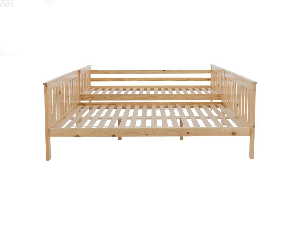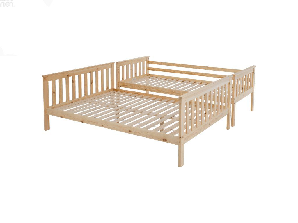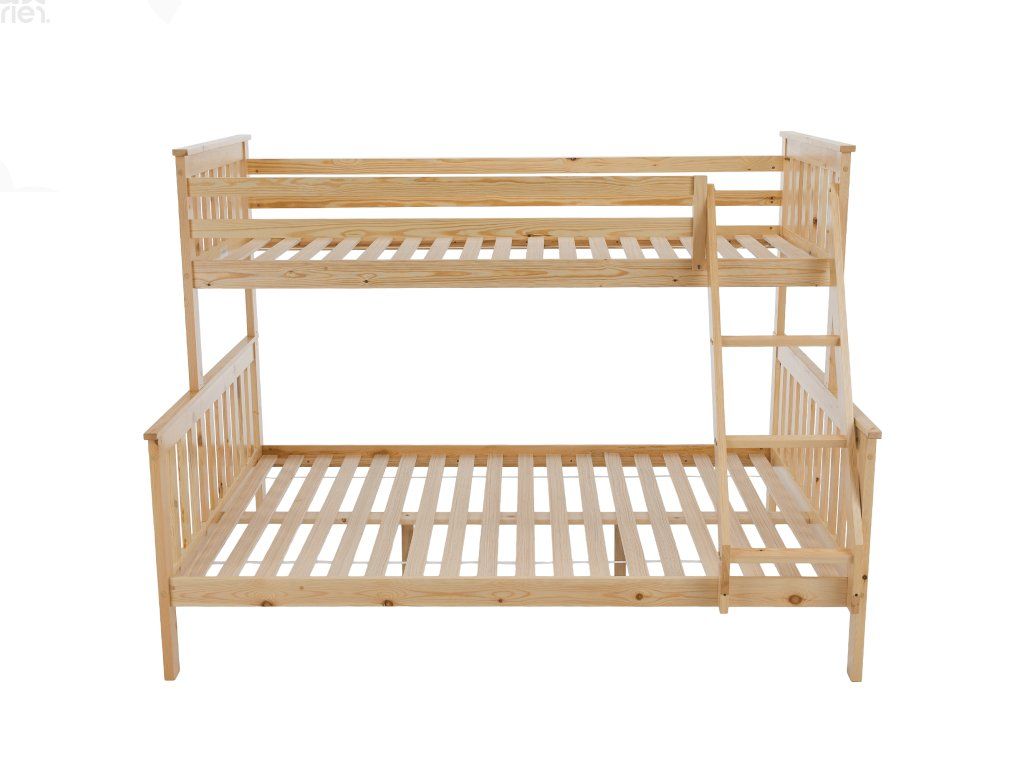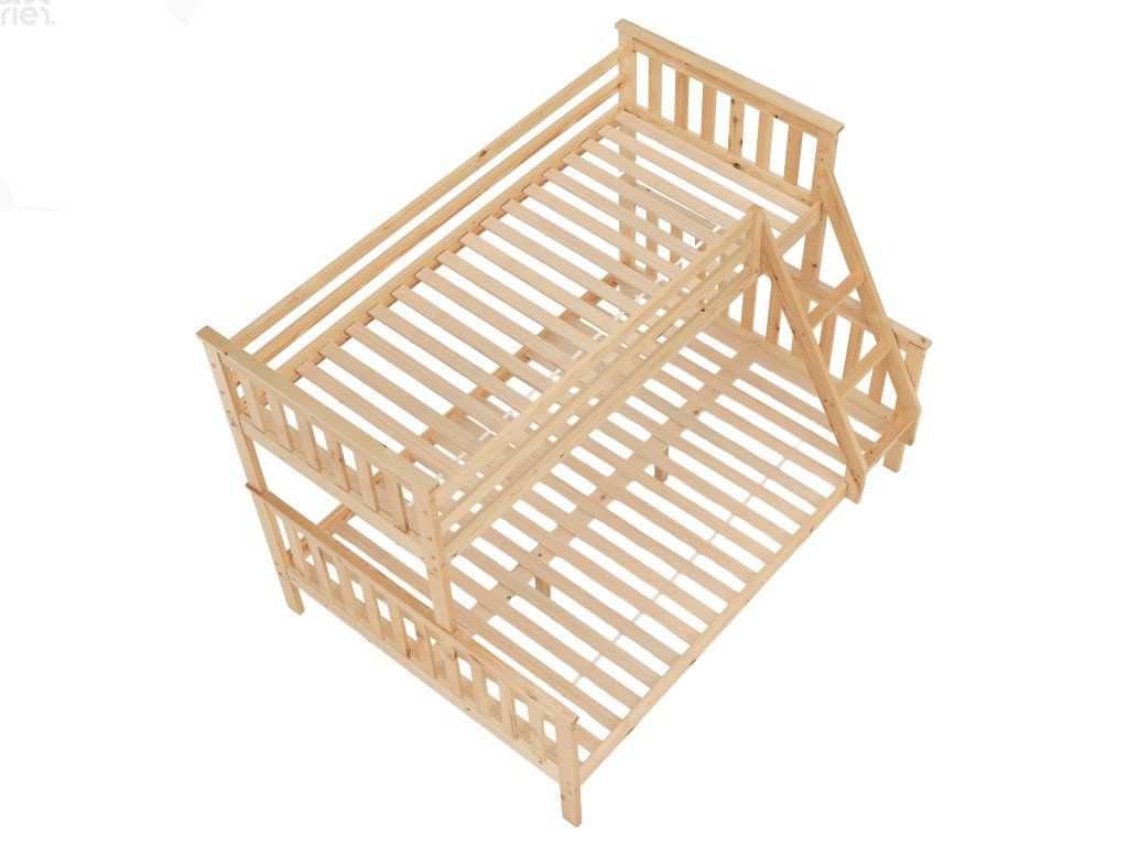 Patrová postel LUINI z masivního borovicového dřeva v přírodním odstínu je ideálním řešením do dětských pokojů i menších bytů. Díky chytrému rozkládacímu systému ji můžete využívat jako patrovou postel nebo ji rozložit na dvě samostatná lůžka. Spodní lůžko s plochou 140x200 cm nabízí dostatek prostoru i pro dvě osoby, horní lůžko o rozměru 90x200 cm je vhodné pro dítě či dospívajícího. Celkem poskytuje pohodlné spaní až pro tři osoby.