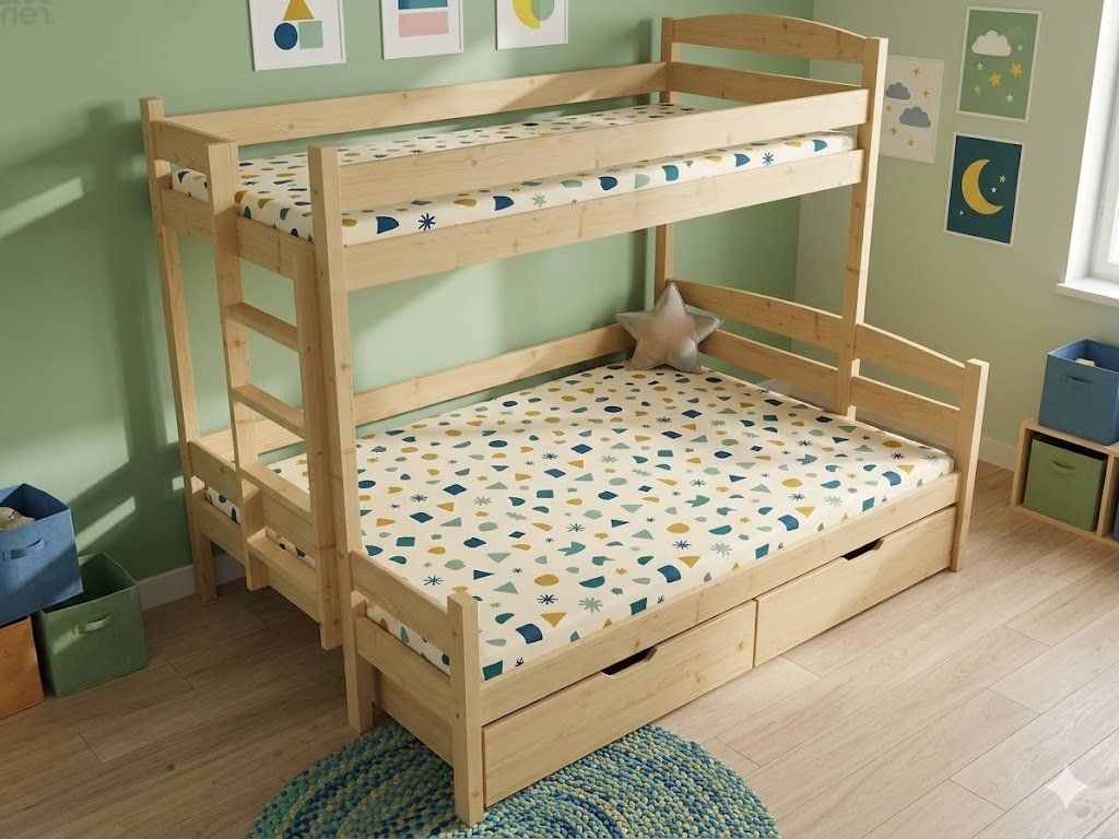 Patrová postel s rozšířeným spodním lůžkem LUKA PINE vč. roštů + ŠUPLÍKY