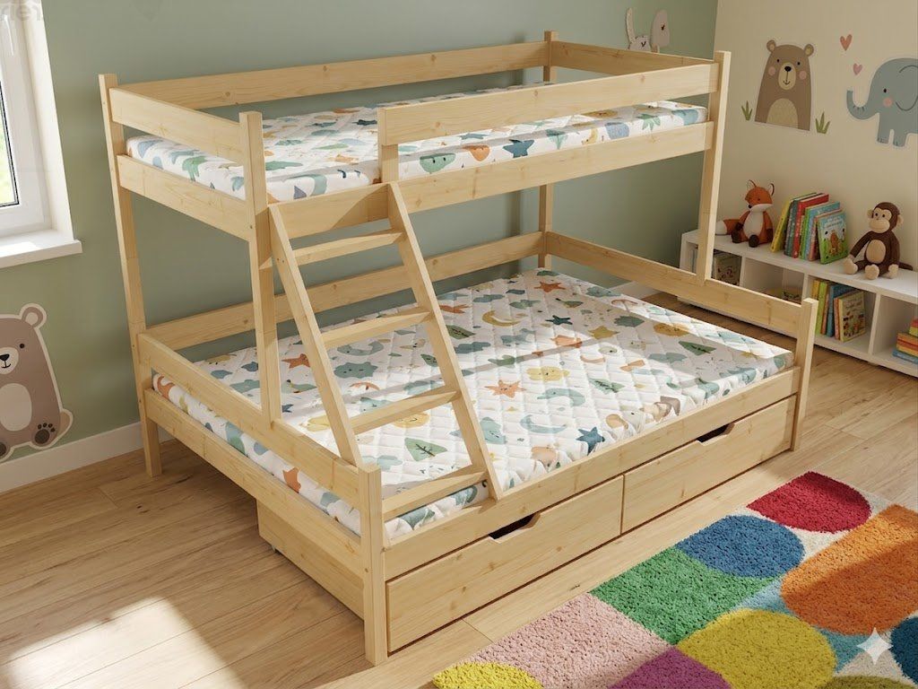 Patrová postel RUDI PINE 120/140x200 vč. roštů + ŠUPLÍKY