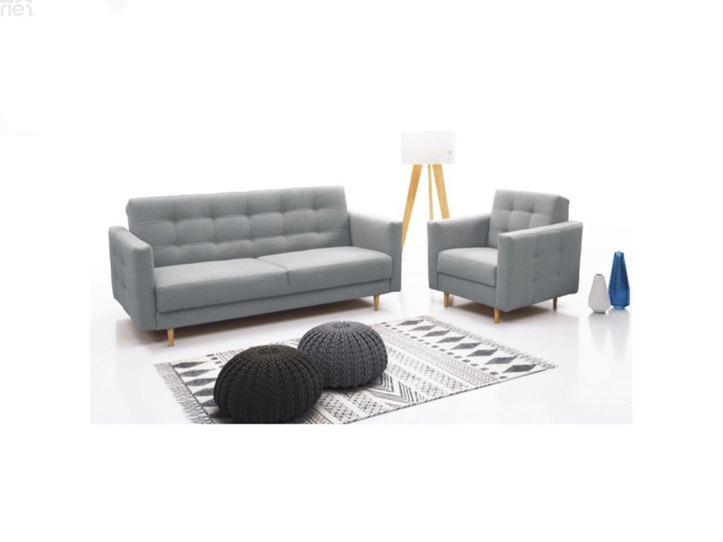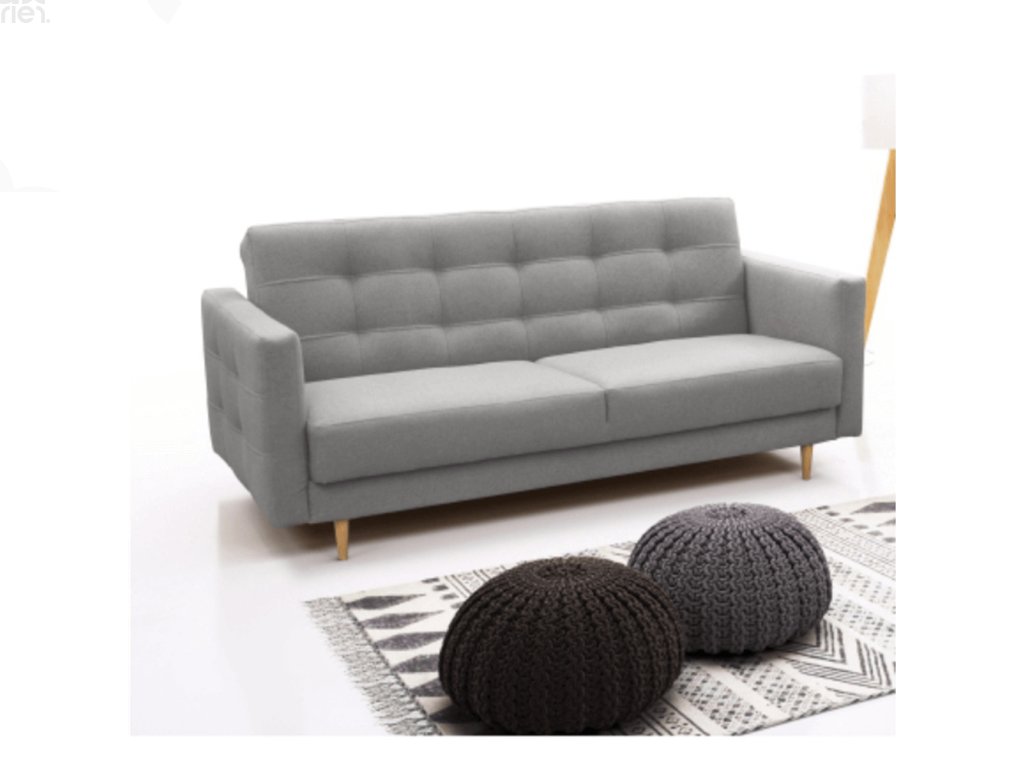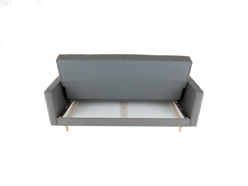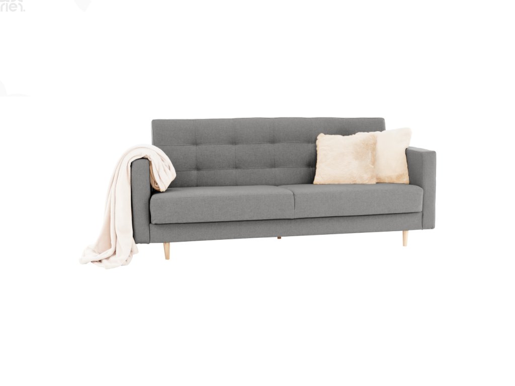 Pohovka rozkládací AYESHA – šedá látka NORN, skandinávský design a praktický úložný prostor