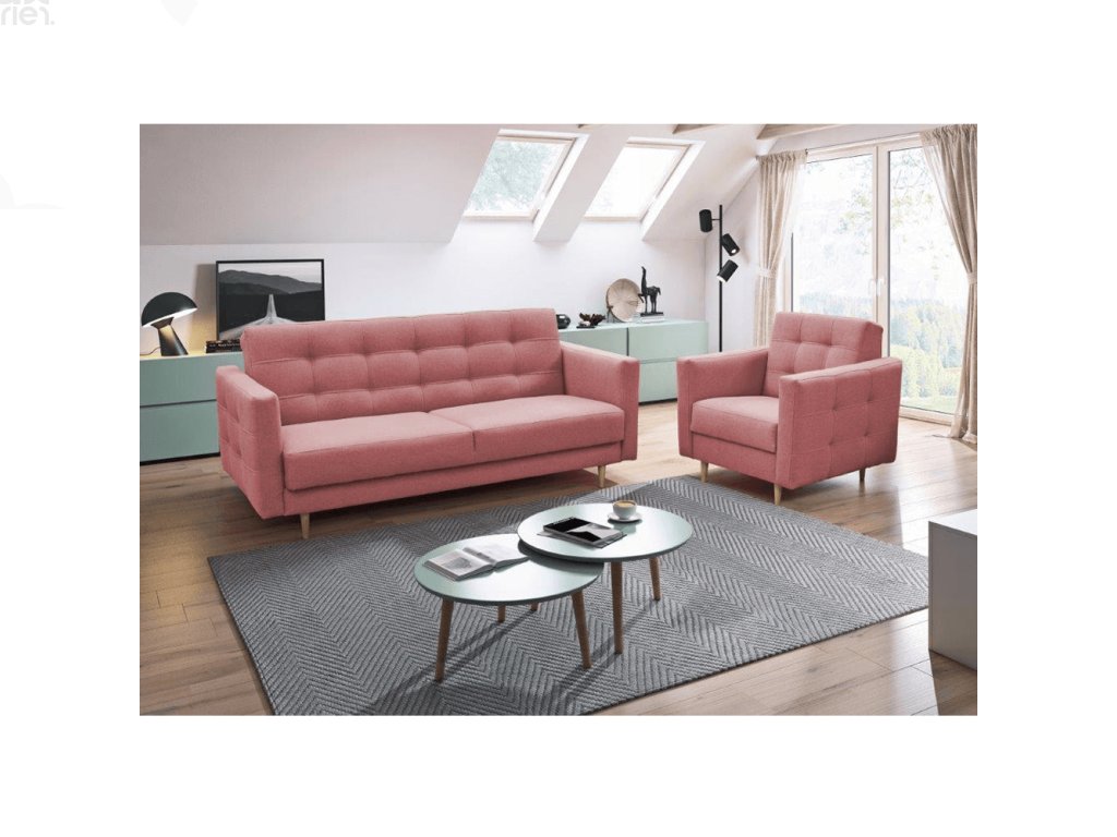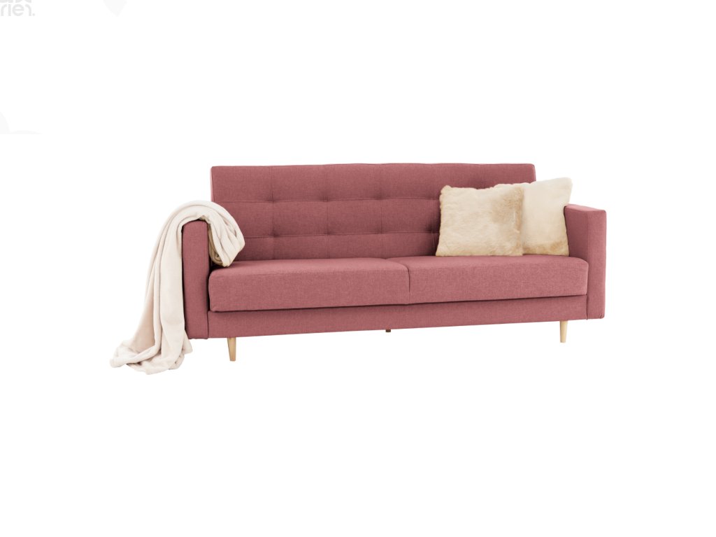 Pohovka rozkládací AYESHA – starorůžová látka NORN, skandinávský design a praktický úložný prostor