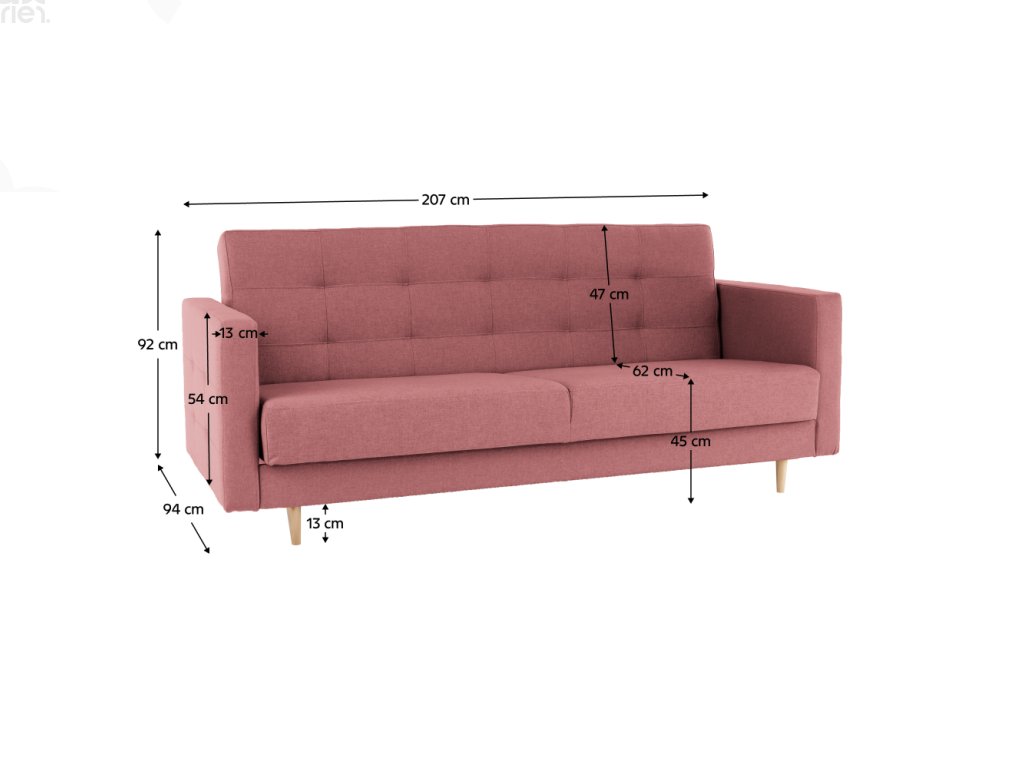 Pohovka nabízí prostornou plochu na spaní 124x181 cm, vhodnou pro odpočinek i návštěvy. Bonelová výplň sedáku poskytuje komfortní a ergonomické sezení, zatímco dekorativní prošití podtrhuje elegantní vzhled.