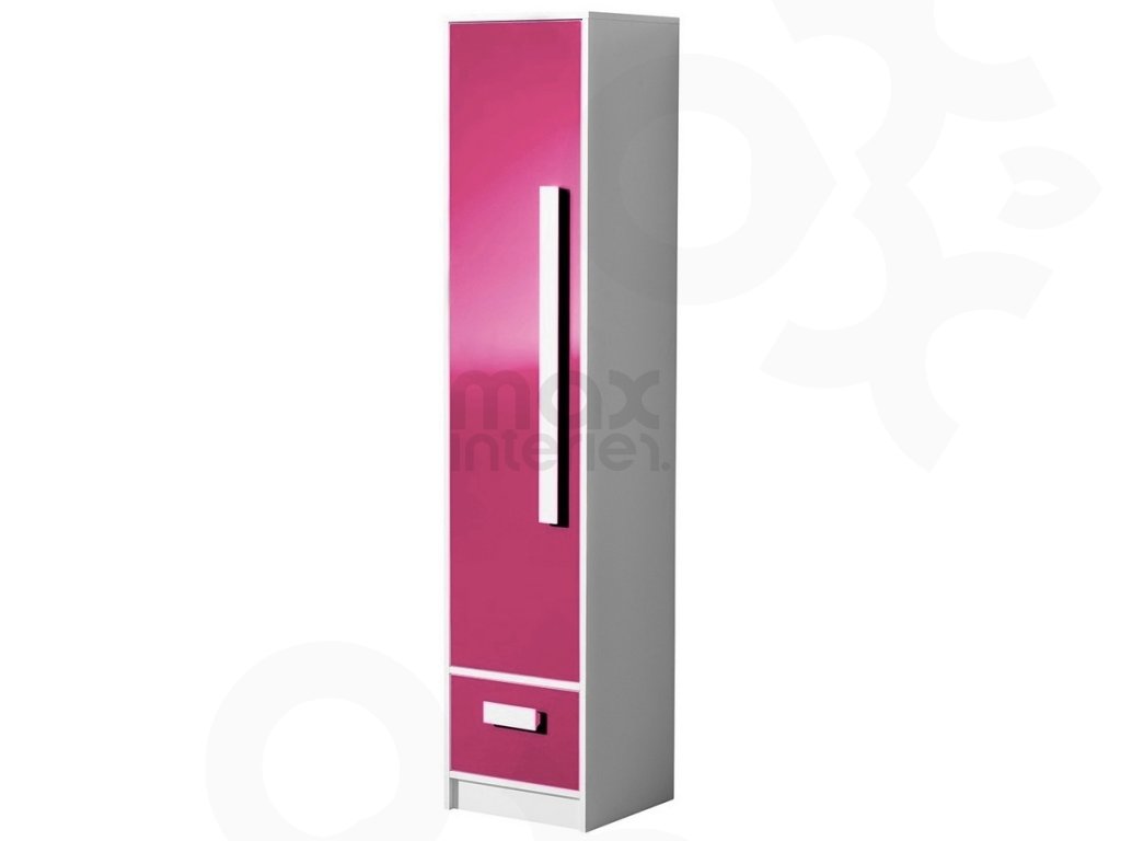 Policová šatní skříň GALIO 4 do dětského pokoje - bílá / růžová lesk