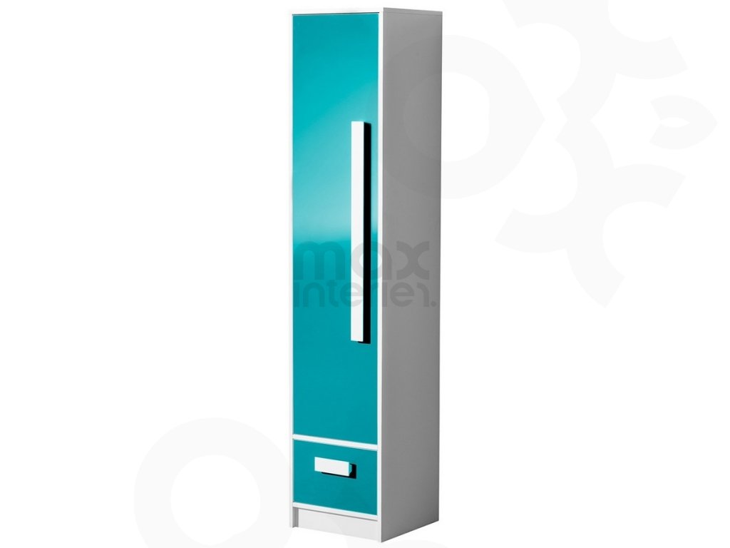 Policová šatní skříň GALIO 4 do dětského pokoje - bílá / tyrkys lesk