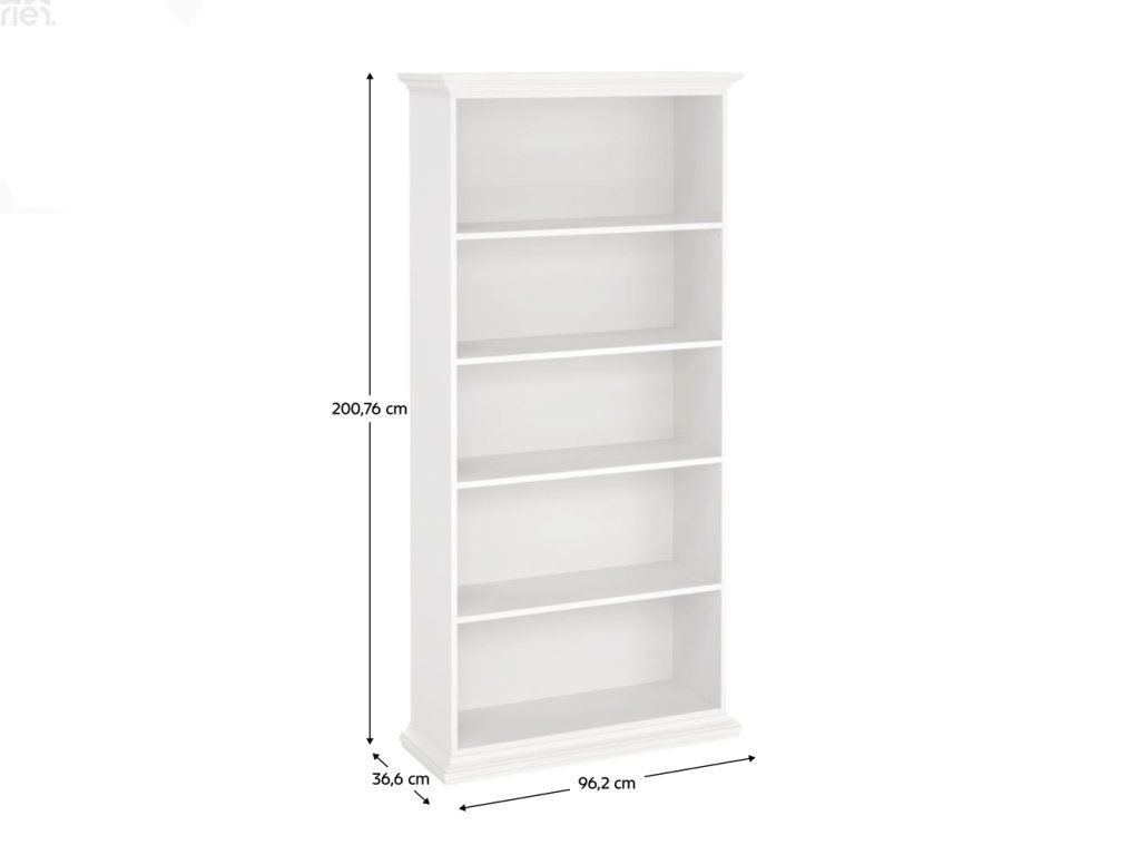 Otevřené police a ozdobné lišty dodávají regálu moderní a vzdušný vzhled, který se hodí do obývacího pokoje, pracovny i ložnice. Nosnost 10 kg na polici umožňuje bezpečné uložení vašich věcí. Světlá barva a jednoduchý design opticky zvětšují prostor a snadno se kombinují s ostatními prvky sektorového nábytku ANNETIEN.