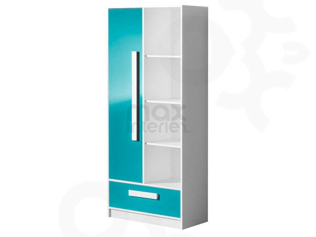 Policový regál GALIO 3 do dětského pokoje - bílá / tyrkys lesk